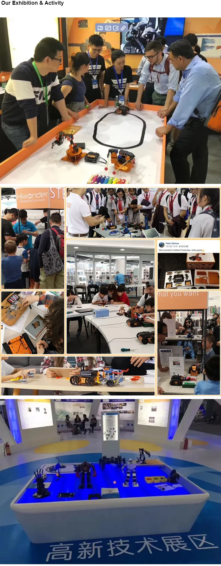 We insist on independent research and development. Until now, we have more than 40 technical patents on different robot platforms. We have developed more than 300 robots and open source hardware including intelligent bionic robots, desktop robots, IoT kits, robotic car, electronic building blocks and etc, most of them have received a great popularity at home and abroad.