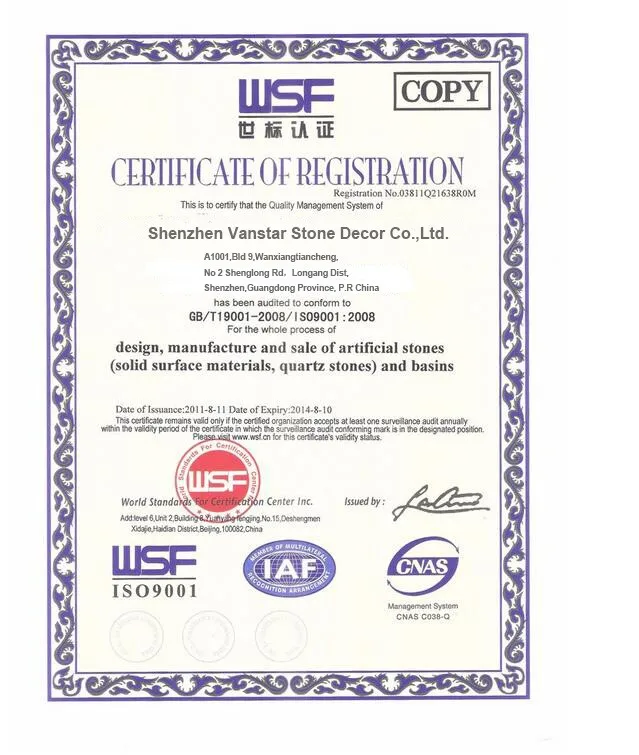 6. The standard setters of Quartz and Solid Surface Fabrication in China