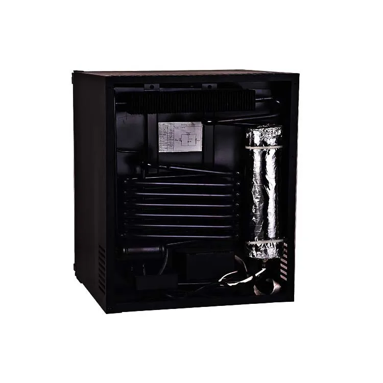 Characteristic | ● Using R717 refrigerant ● Total silent, no vibration, does not affect guests sleep ● Using cyclopentane (C5H10) foam, good insulation effect ● HIPS highlight antibacterial liner, remove refrigerator odor ● Electronic temperature control system, IC chip control automatic defrosting system ● Overhead lighting design, low power cold light LED lighting ● Simple operating temperature regulator ● Adjustable glass shelf ● Optional accessories: reversible door, lock and key, linkage device |