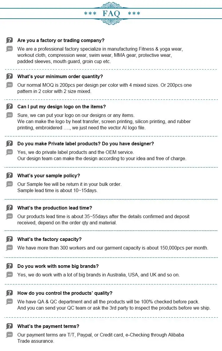 MOQ = 1pcs.We have about 3.5 million pieces in stock, 12 production lines, 1 million pieces per month, 10 + new products per week, 1 day to provide you with customized samples and 3-5 days of express delivery; At the same time, we also provide you with Drop-shipping services. We believe that we will provide our customers with high-quality and fashionable design at the most competitive price to satisfy our customers.