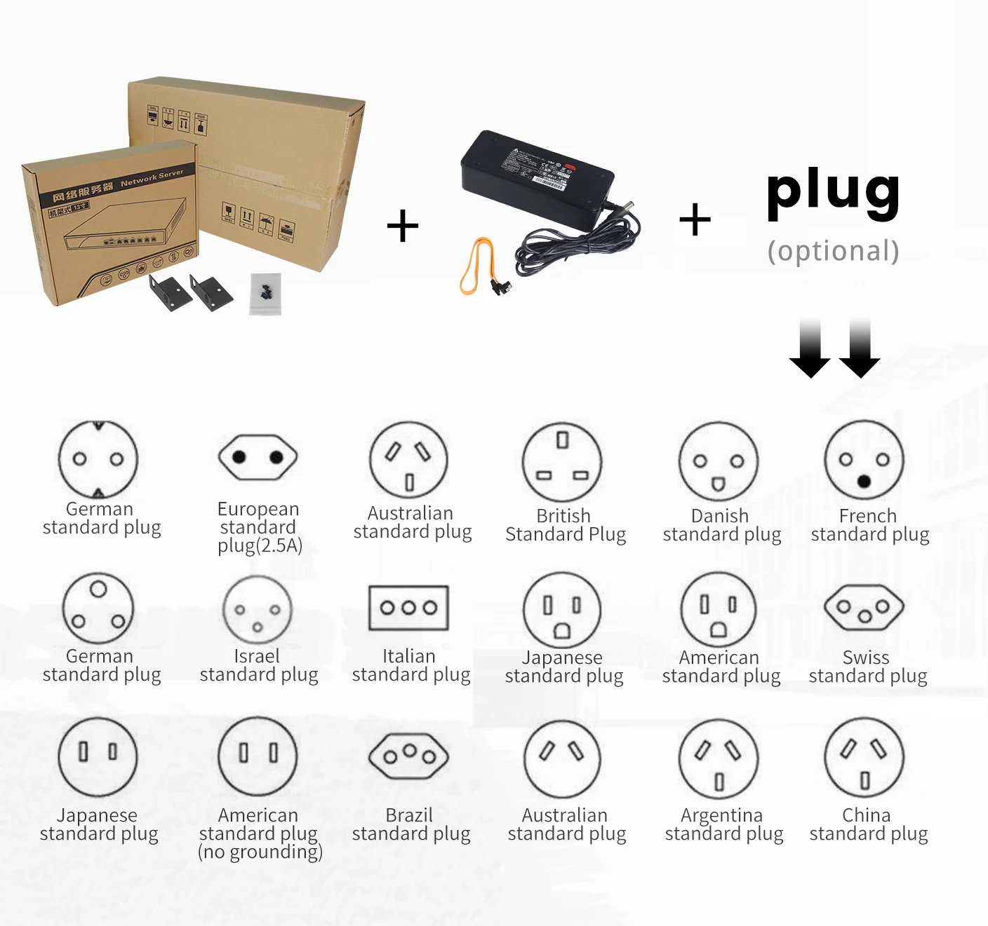 Included accessories | 1*Rack ear 1*SATA cable 1*Screw 1*Power plug |