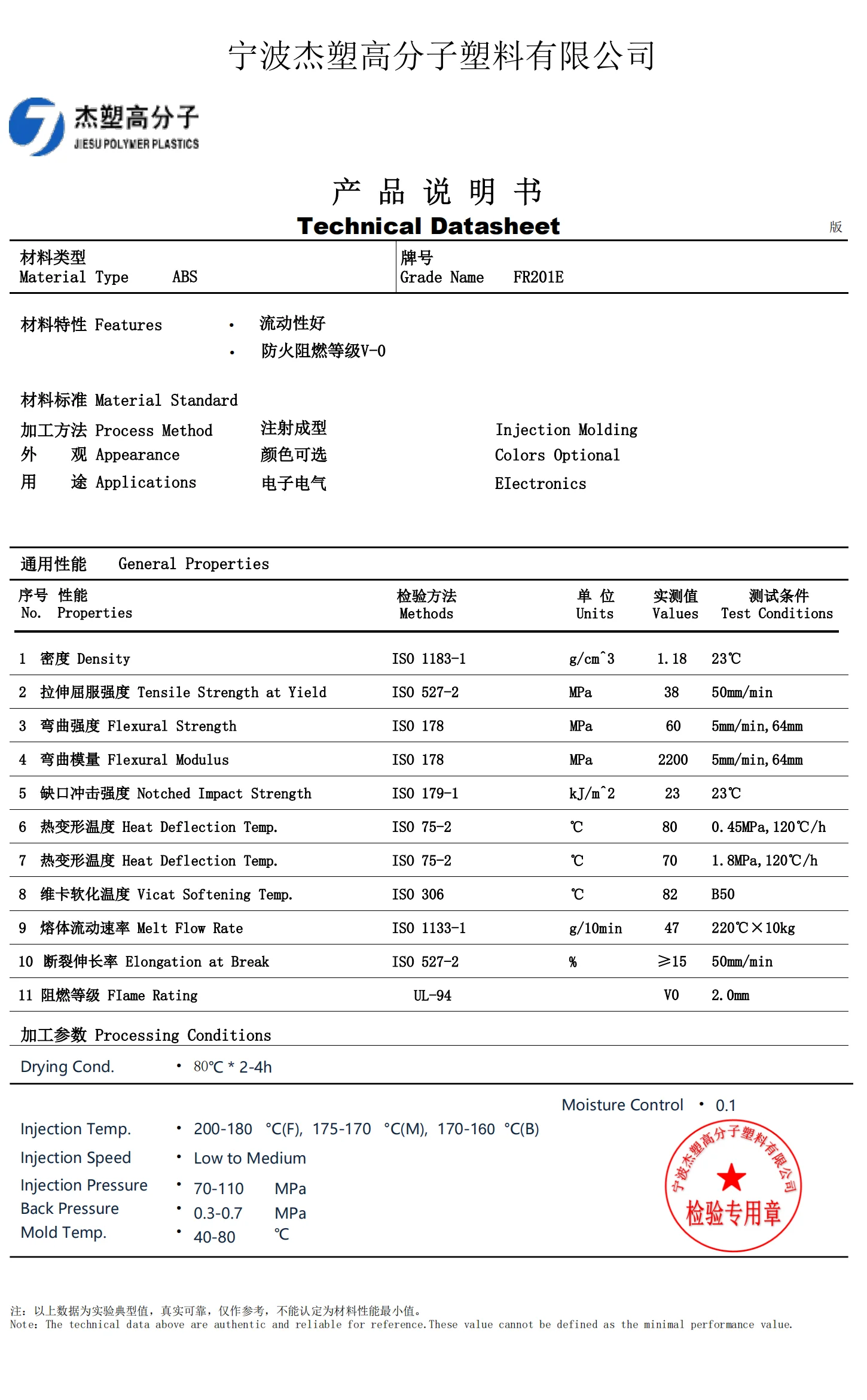 NO. | Properties | Test Method | Units | Value | Testing Conditions | |||||