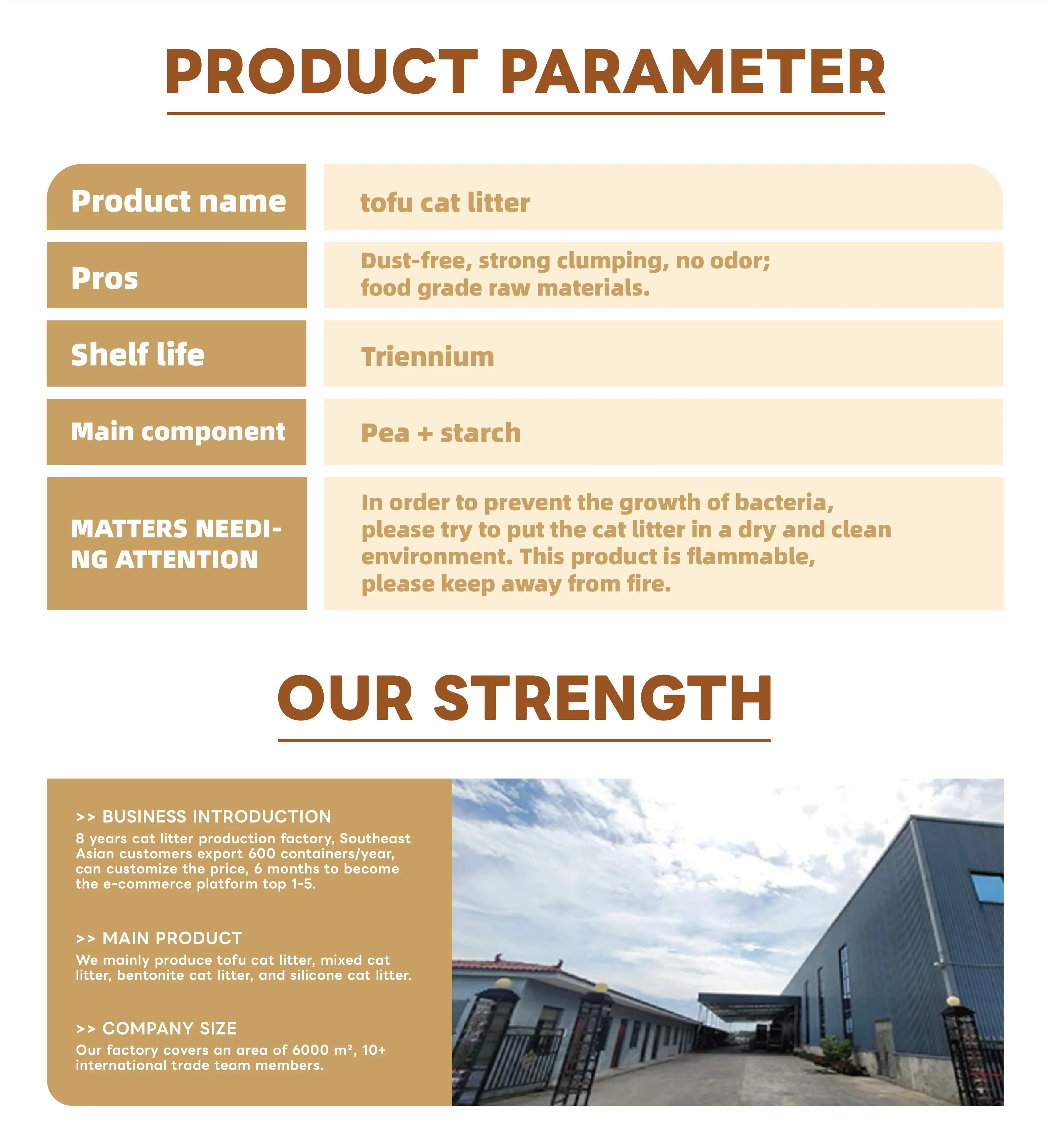 Our company focuses on the production of pet supplies, has more than ten years experience of pet supplies production, sales and research and development,We are a production and sales in one.At present, we have 12 sales staff, 600 square meters of office space, 7,000 square meters of storage area, and with 35 manufacturers to establish deep cooperation.we have sufficient inventory and productivity to meet your order. We have four manufacturers of tofu litter and bentonite litter,and also have our own pet food, pet toys, pet supplies production lines, and many years of production and OEM experience.We have established long-term cooperative relations with many dealers in Europe, America, Japan, Korea and Southeast Asia and so on.