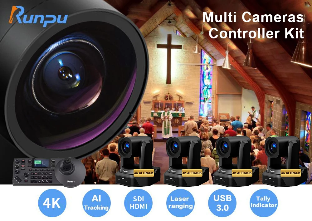 USD2099 Free Ship Broadcast Kit HD66K-30=4 pcs SDI 4K 30X PTZ Conference Camera hd mi lan usb poe AI track+a pcs IP controller+poe switch