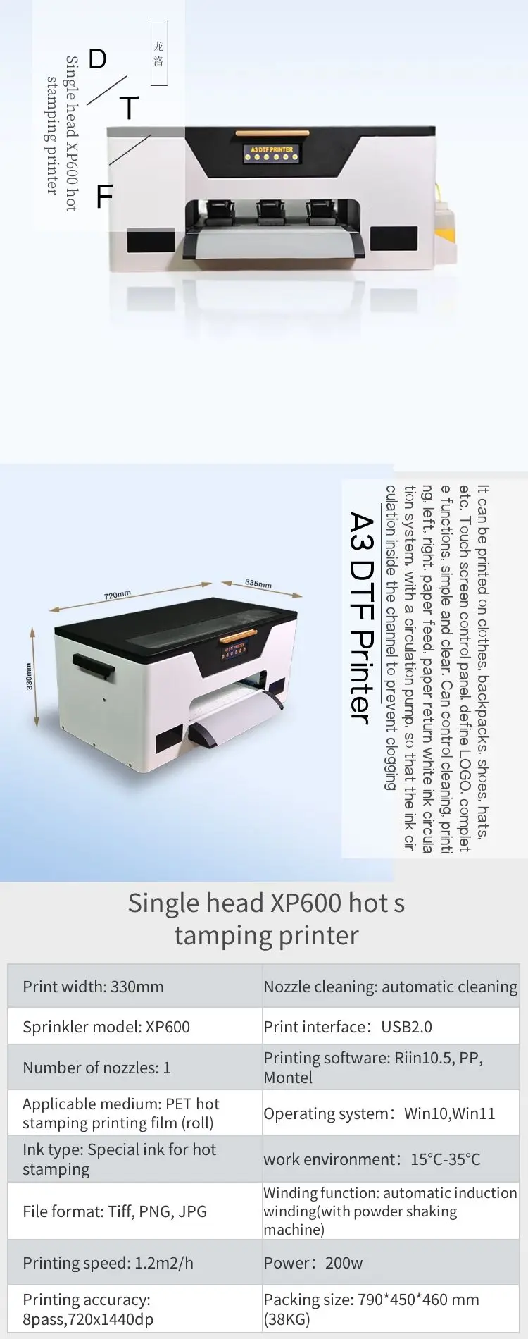 A3 DTF Inkjet Printer Set Heat Transfer T-shirt Printing Machine Direct to Film Printer with XP600 Print Head $1,850.00-1,950.00