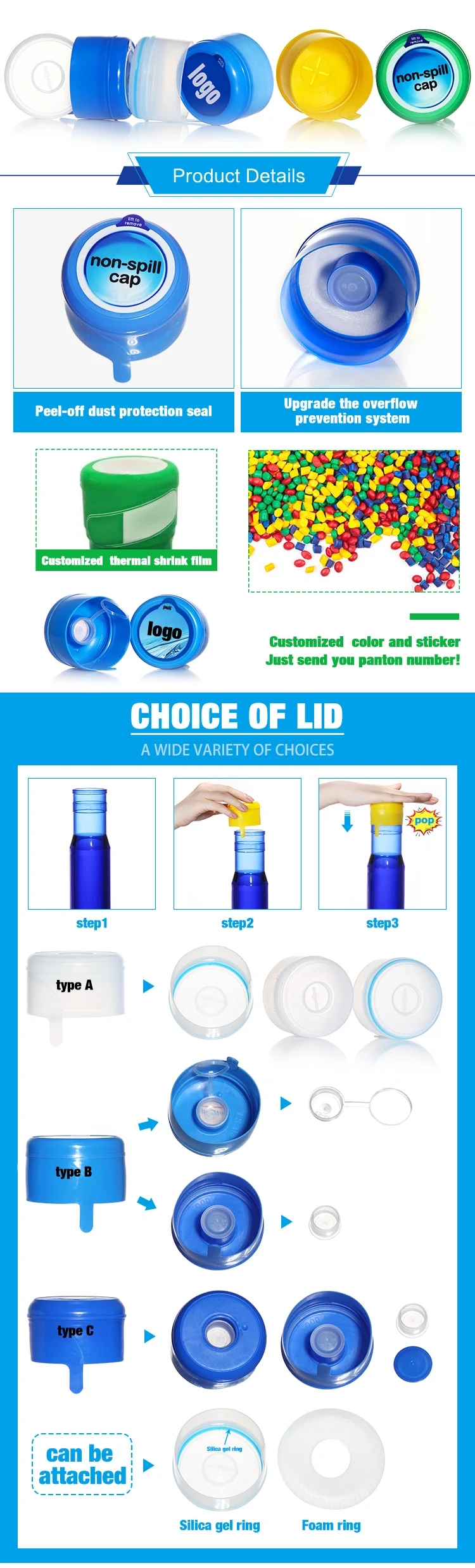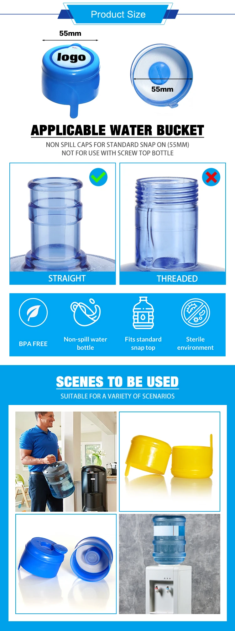Product Name | 55mm Plastic Gallon Bottle Cap Tapa de la botella, Tapa de 5 galones Capuchon, Capuchon de 5 gallons |