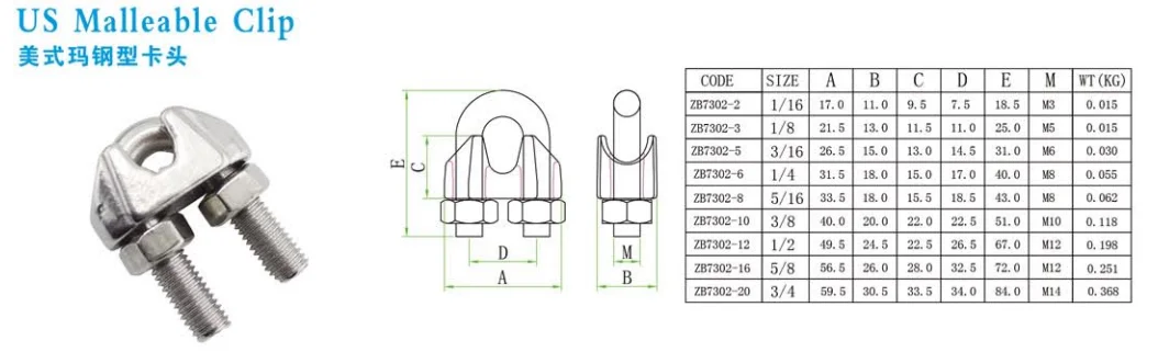 factory price Stainless Steel US malleable Wire Rope Cable Clip Clamp