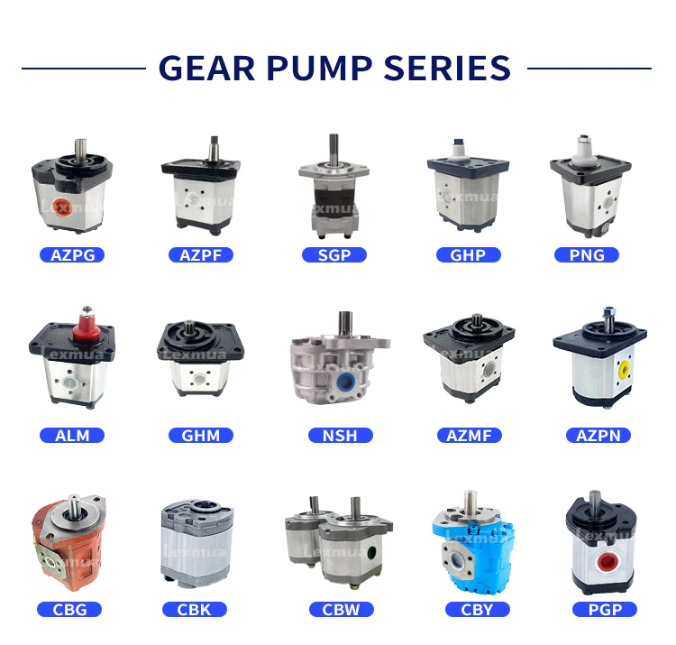 hydraulic gear pump products such as AZPF, AZPB, ALP, HG, SGP, 1P, PGP, GHP, etc. with different uses and different displacement sizes. Products are widely used in forklifts, dump trucks, injection molding machinery, rubber machinery, die-casting machinery,construction machinery, machinery and other industrial equipment, as well as automobiles, ships, construction machinery and other hydraulic systems.