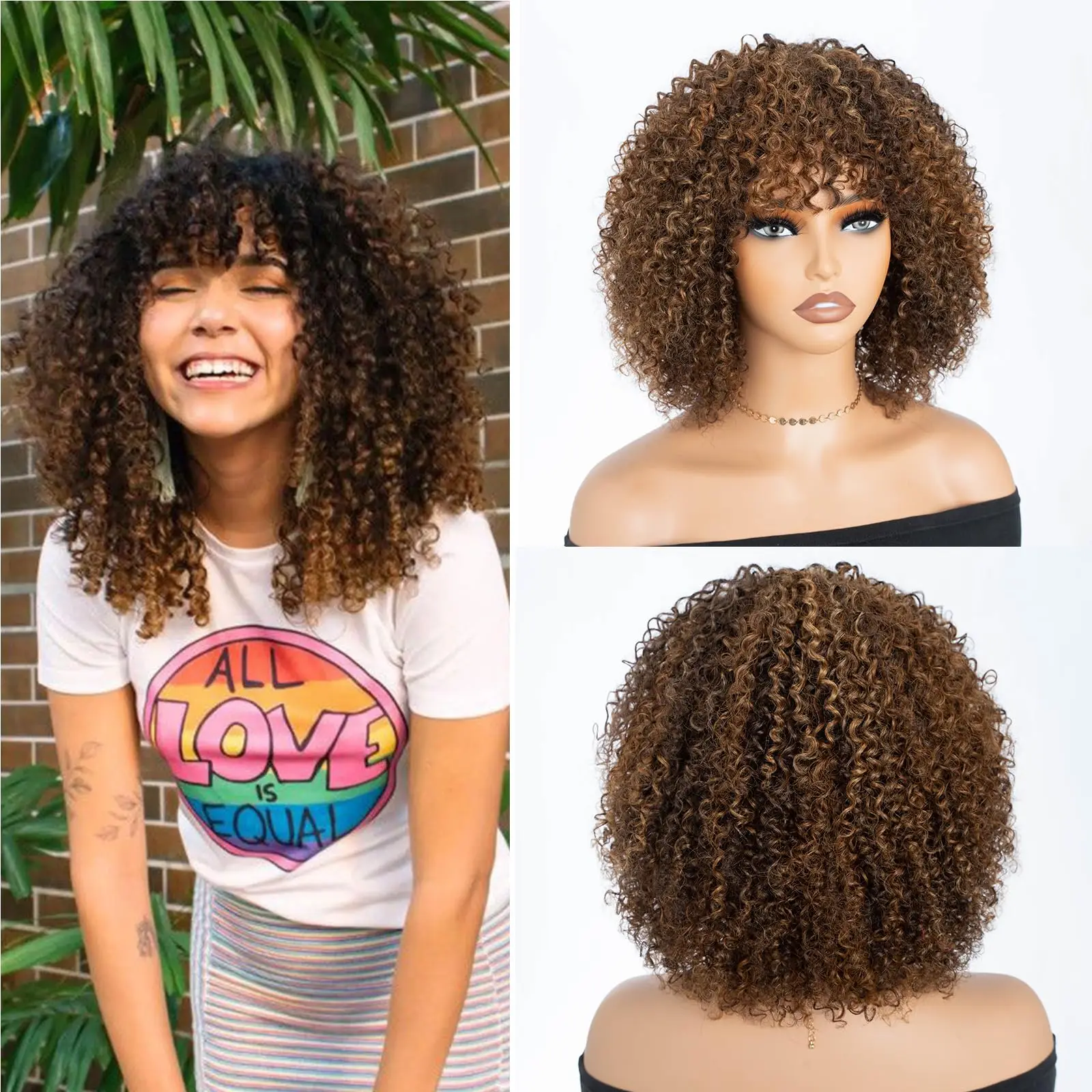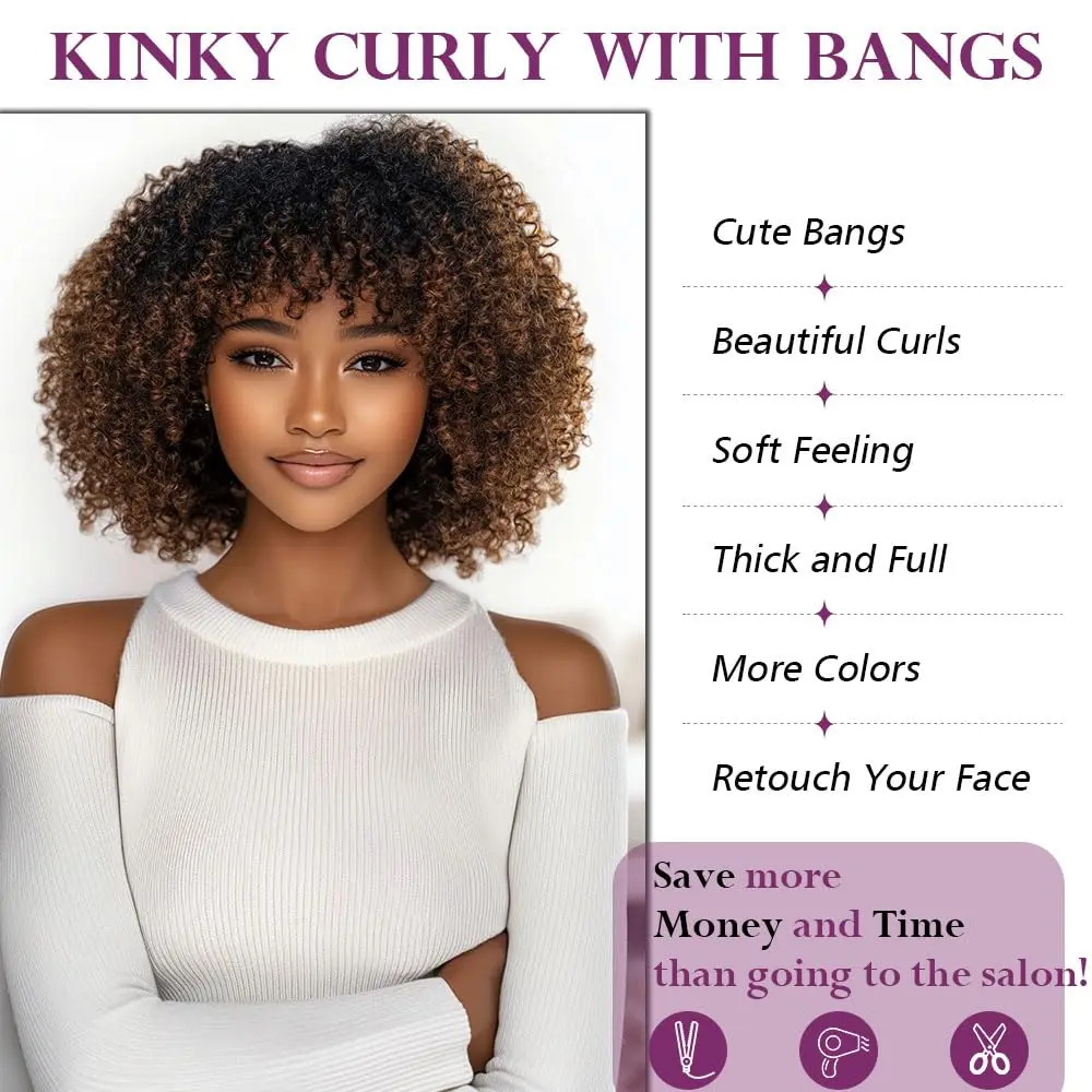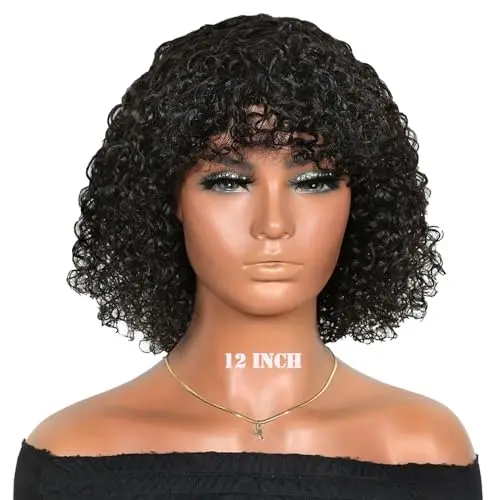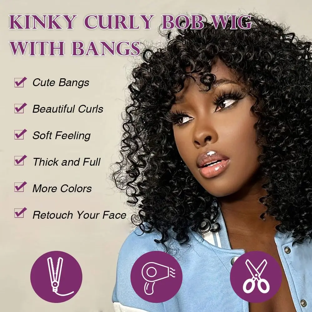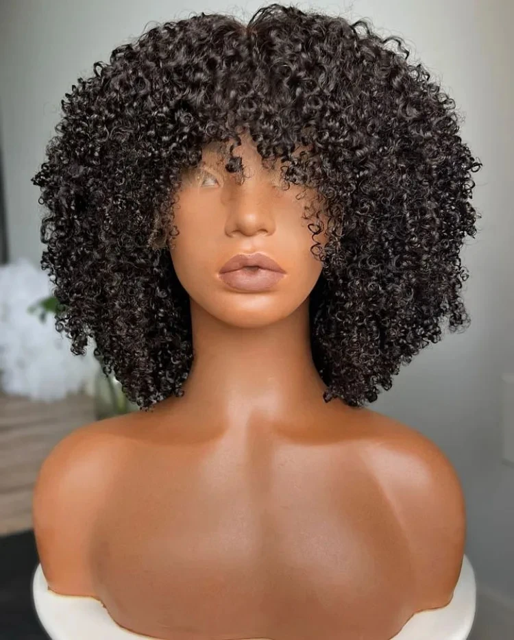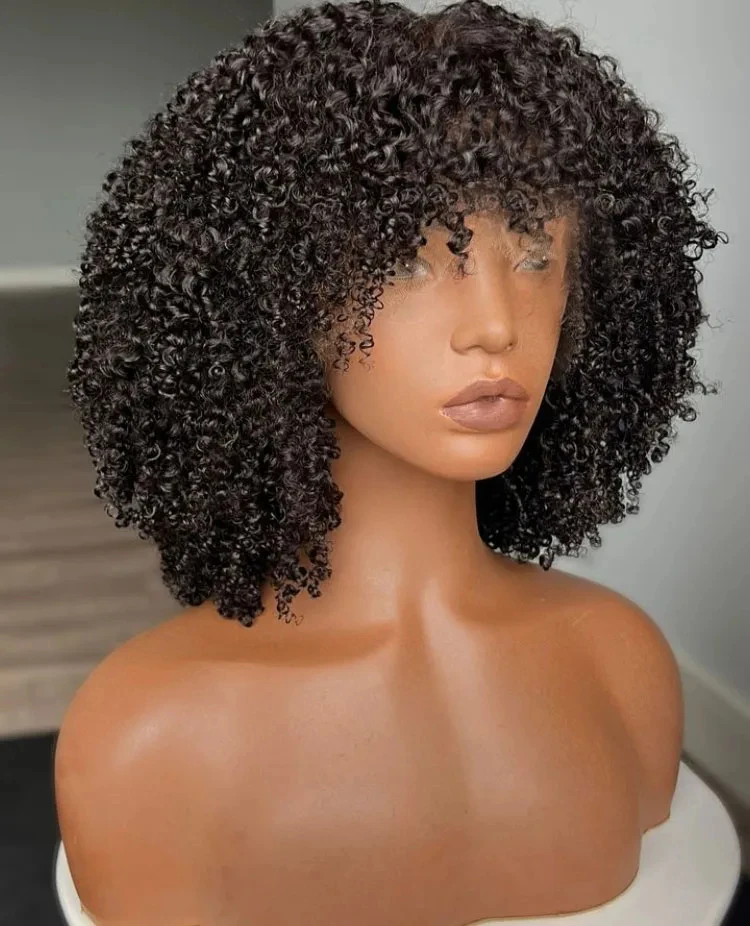 Product Name | Afro Kinky Curly Wig With Bangs Full Machine Made Scalp Top Wig Short Curly Bang Wig Human Hair |