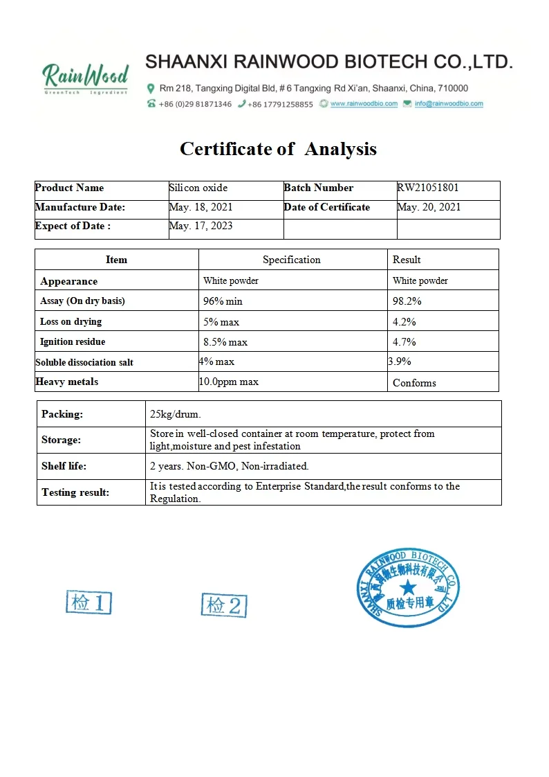 Function of Silicon oxide This product can be used in health care products, food, cosmetics and other industries. This product has a variety of functions,due to policy changes, the function and application of some ingredients cannot be disclosed.
