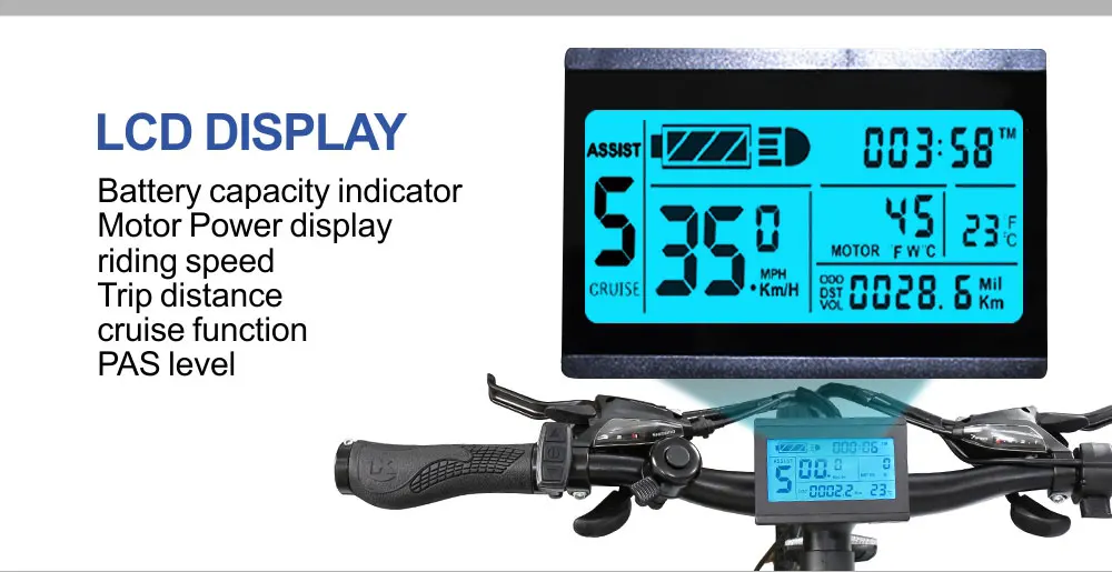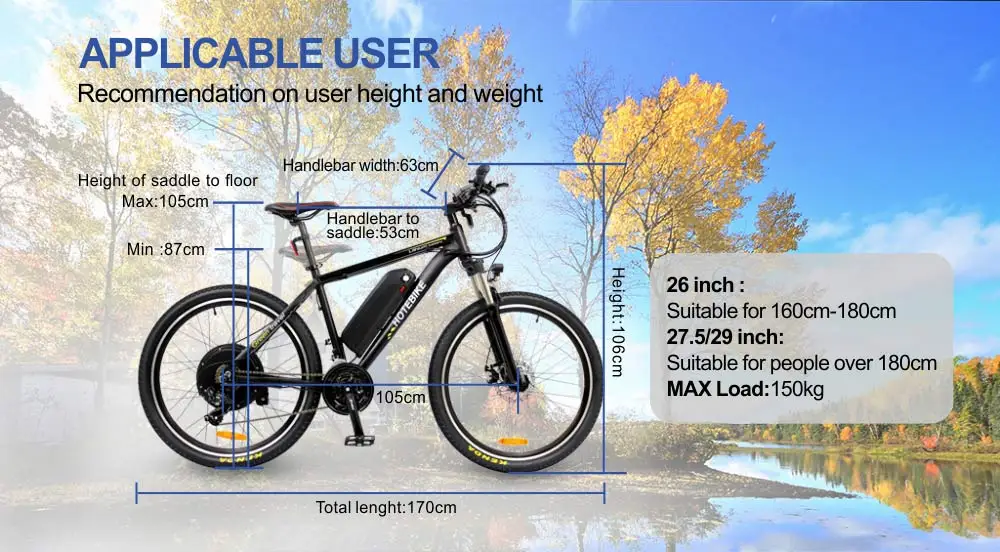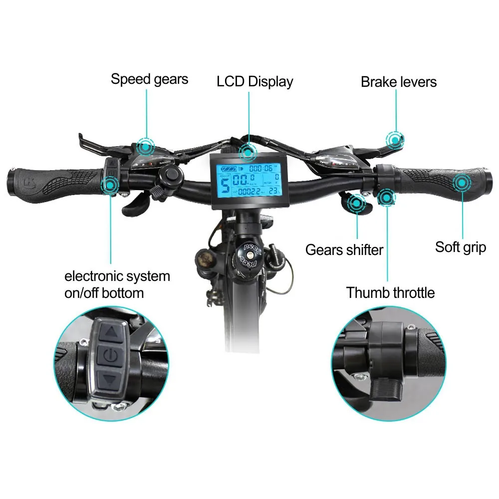 1.Power and reliability of 36V/48V 250W/350W/500W hub brushless motor are fairly bulletproof and low maintenance 2.36V/48V 9AH/10AH/13AH/19.2AH lithium-in battery on the electric bike as power supply give your long time riding 3.26"*1.95 wheel suit commute to work and to school 4.Disc brake stop electric bike easily with less power 5.Soft and comfortable saddle for long time cycling 6.150kgs of the max load 7.Aluminum alloy Light Weight frame suit all age 8.LCD display know the information of the electric bike 9.Adjusting the gears with 21/27 Gears while cycling 10.Waterproof wire and hidden controller |