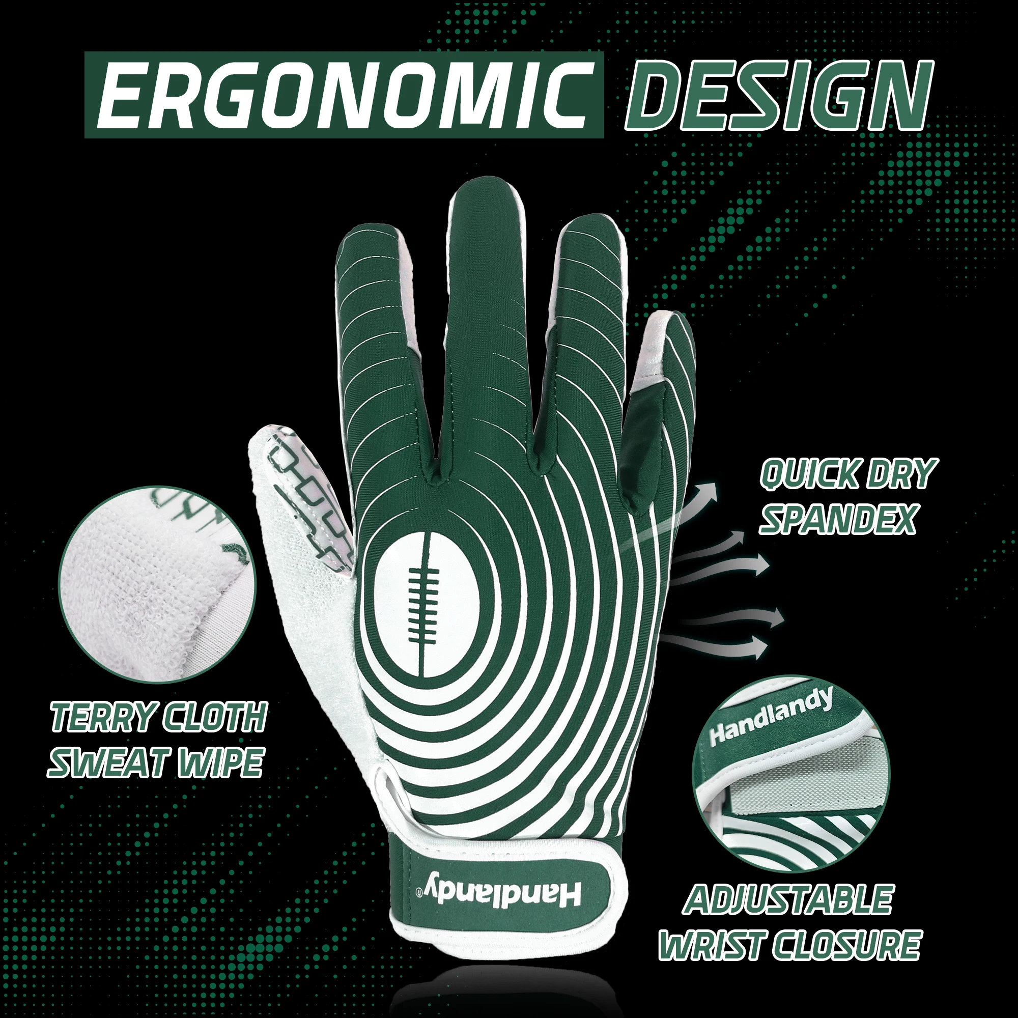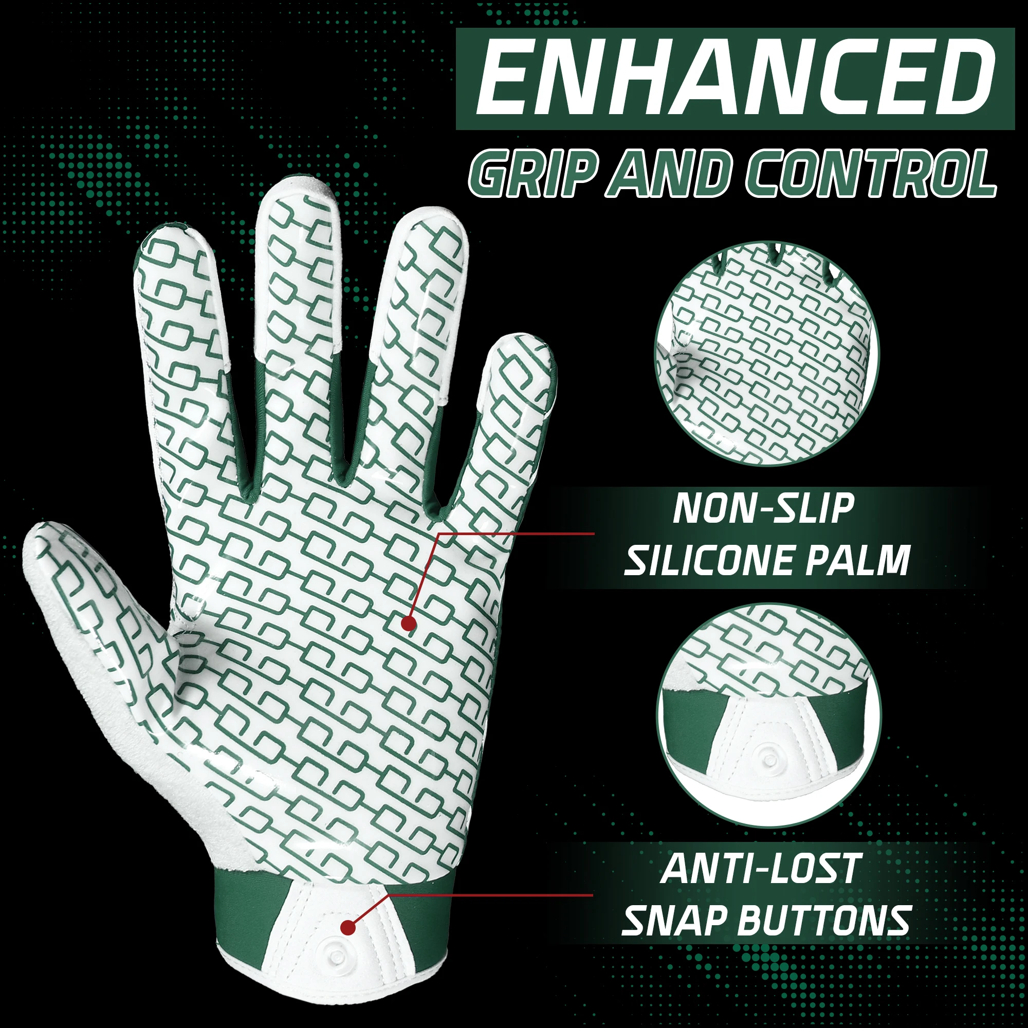 Feature | Synthetic Leather with Fully silicone coating Palm offer great grips holding , spandex back, neoprene cuff with hook and loop closure |