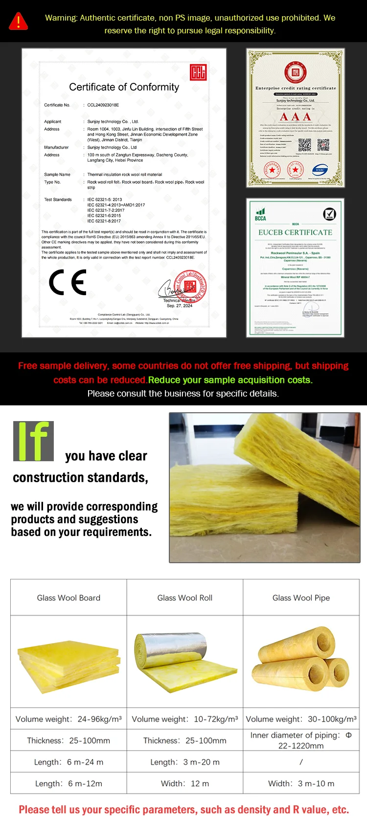 Incombustibility | Incombustible | Up to standard (Grade A) | GB/T 13350-2000 | |