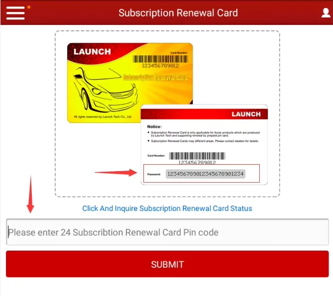 Very important !!! This link ONLY supports update for CRP429C/ CRP423 /CRP479/ CRP349 / CRP469/ CRP909E/CRP909/CRP909X. Note: We will not send out the update card , because it is very easy to lose on the way. If you placed an order, please send me a picture of the device with a clear serial number to me We will send update code to you update your device directly Introduction The Subscription Renewal Card is only applicable for those products which are produced by LAUNCH and supports software payment and renewal.