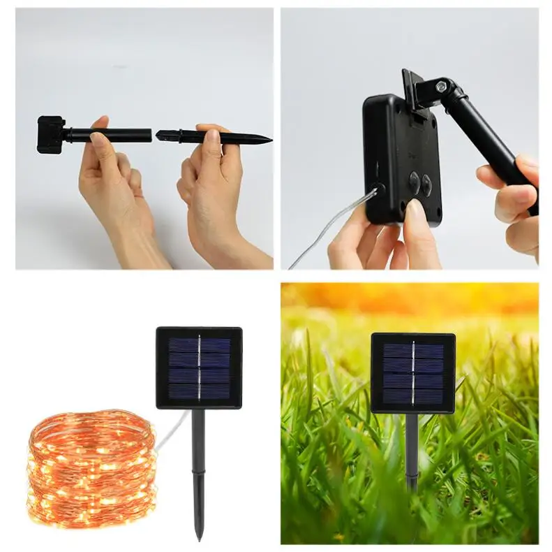 Hot Sale Solar Copper Wire Light String Outdoor Waterproof Colorful Lights Christmas Holiday Courtyard Lawn Decorative Lights