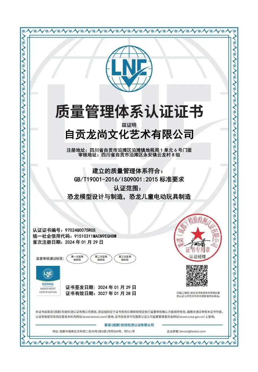 Zigong Long Shang Culture & Art Co. , Ltd. established in 2023,is a supplier of animatronic dinosaurs, animatronic animals, dinosaur fossils replica, dinosaur costumes, dinosaurs ride and movie characters sculpture. At present, the company’s products are exported to the United States, Dubai, South Africa, Singapore, Indonesia and other countries. Our company pursue the perfect combination of quality and value, strive to be the best after-sales service company in the industry, strive to be the most agile, the most rapid response to customers of the service-oriented production and sales of integrated company.
