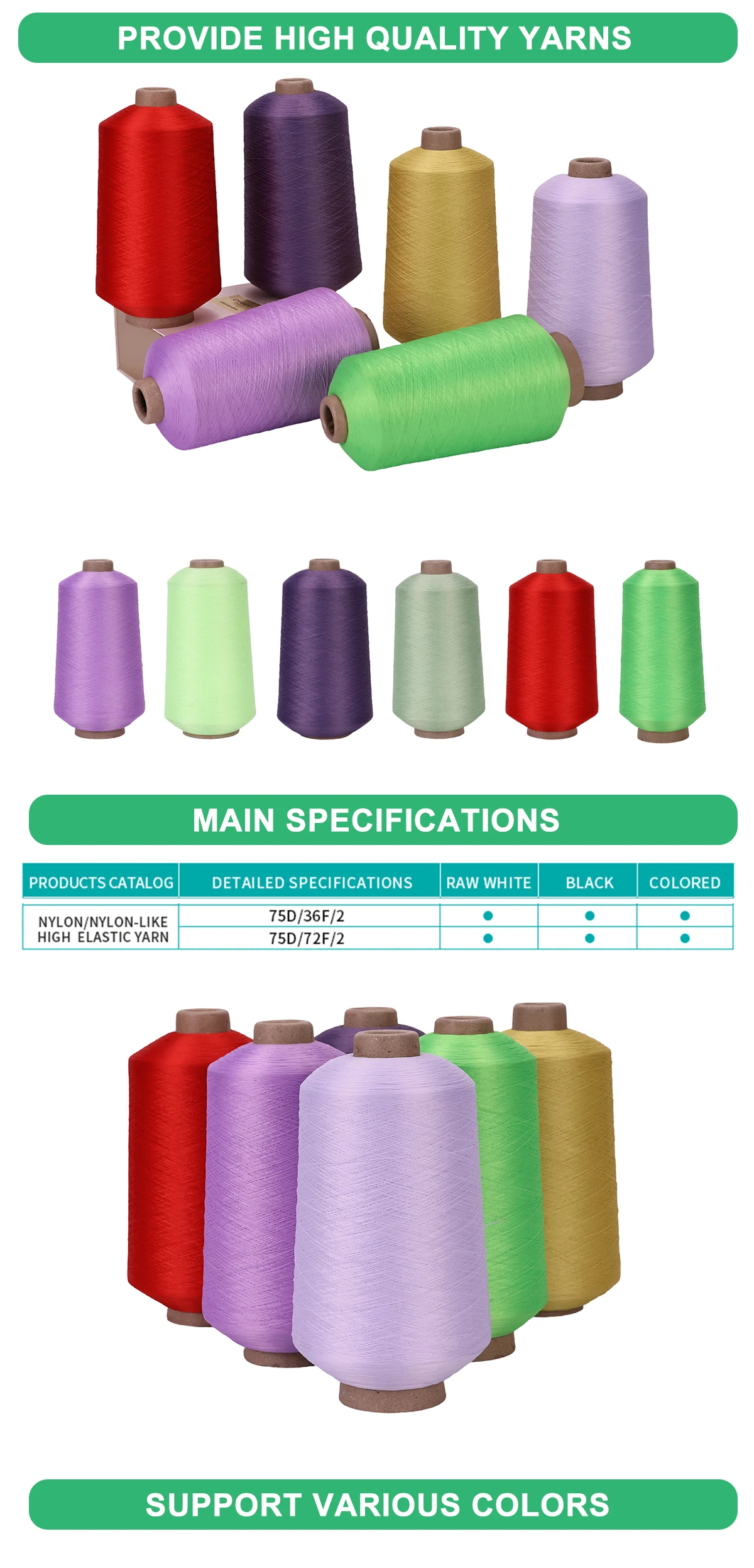 Our corporation was founded in 1995, located in Datang Street, Zhuji City, which has been reputed as the global socks industry centre.The corporation has three sub-manufactories and takes up an area of nearly 80,080 square maters,with the total assets of RMB 10,000.000 Yuan. We are specialized in the production environmental-friendly doped dyed yarns : Polyester spun yarn,Polyester and Cotton mix spun yarn , Polyester doped POY and DTY yarn, Polyester spandex covering yam (SCY/ACY), Rubber elastic yarn, PP DTY yarn, Recycle cotton OE yarn, totally more than 200 kinds of colors and specifications in 6 categories, With a total production capacity of 30,000 tons per year, these are the ideal raw materials for kniting and weaving , such as socks, underwear, sportswear, sweater, etc. With excellent equipments and professional technical employees, our company passed the 1S09001:2000 certification in 2003, "SHOWTIME" series of products sell well in the domestic major markets, export to USA, Mexico, Russia, Egypt, japan, Vietnam, Thailand, Uzbekistan and other countries and districs in Africa, Southeast Asia, the Silk Road Economic Belt. Since 1995,The Company has been awarded the title of "A top enterprise of textile industry". "Famous brand of Shaoxing city". "Good quality credit enterprise".Etc. We Passed GRS--Global Recycled Standard Certification, OEKO-TEX Certification. Our corporation has been the worid's well-known brand Adidas fourteen - year partner. Also has a very good cooperation with ESPRIT, Uniqlo, Wal-Mart and other suppliers. The development of special products such as antibacterial yarn, flame retardant yarn, hygroscoine sweating yam , graphene fiber yarn ,PLA corn fiber yarn have expanded our broad market for the future. | ||||||||