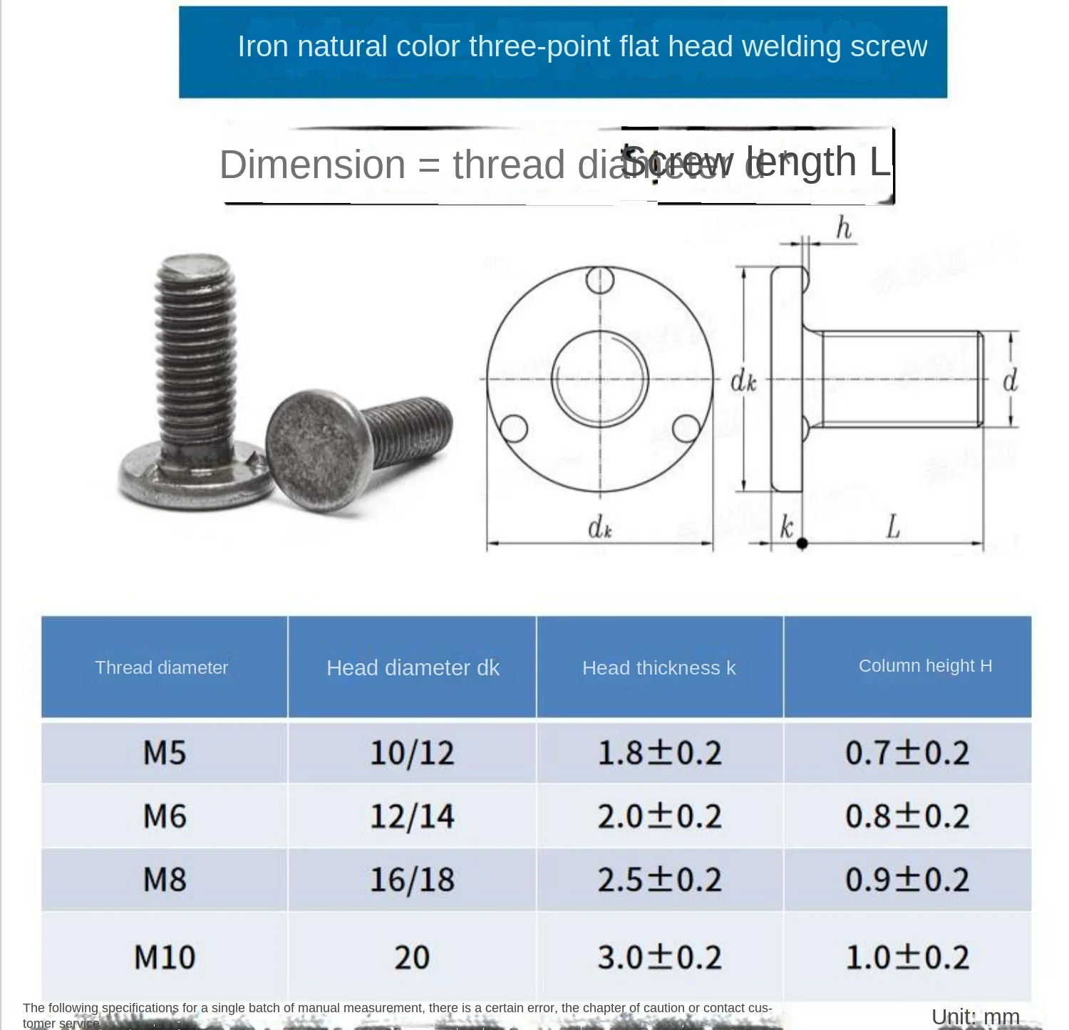 | Model Number | Flat head welding screw |