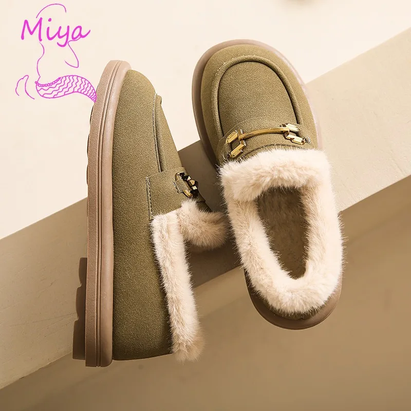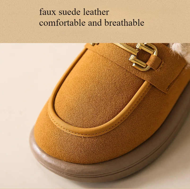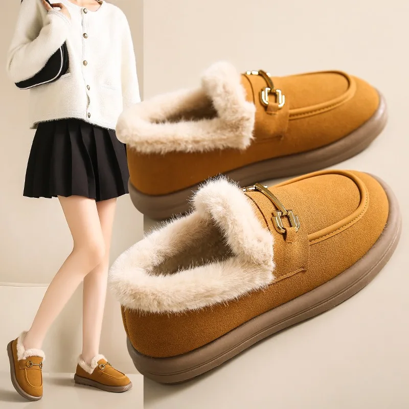 Low Cut Warm Beanie Cotton Shoes Winter Velvet Thickened Flat Bean Shoes Lamb Wool Round Toe Snow Boots for Women
