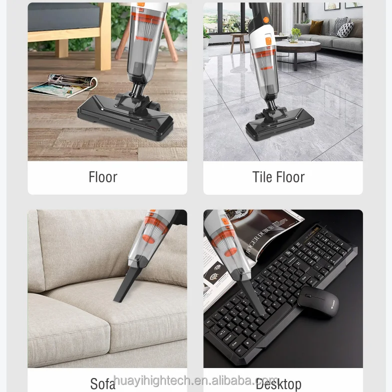 Standard accessories: 1pc 2-in-1 crevice nozzle/brush, 1pc power charger | Optional accessories: charger/holder with upcost, tubes and floor brush with upcost |