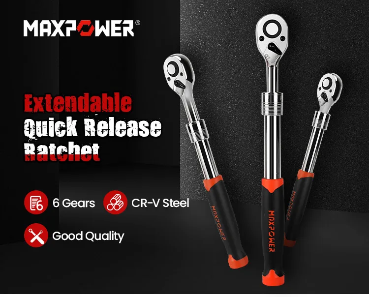 MAXPOWER 72 Tooth Adjustable Socket Ratchet Wrench 1/2 inch Extendable torque wrench extendable ratchet