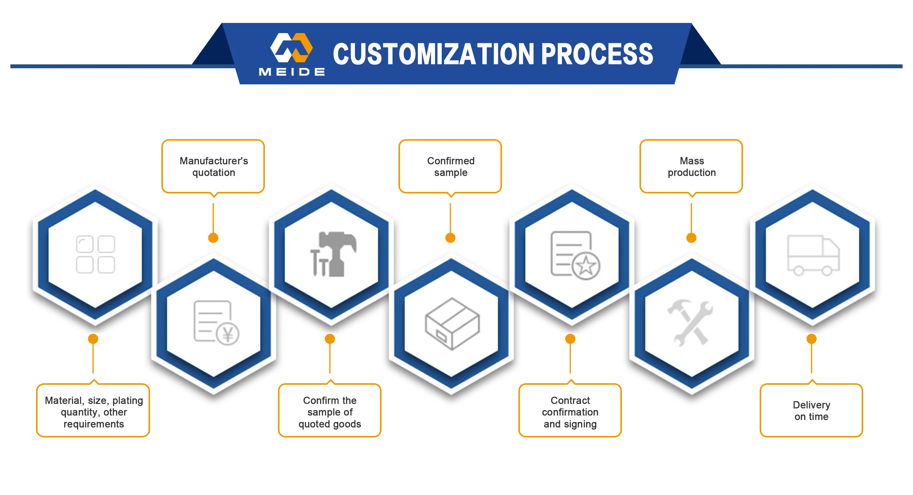 All parts are custom made according to customer's drawings or samples, no stock. |