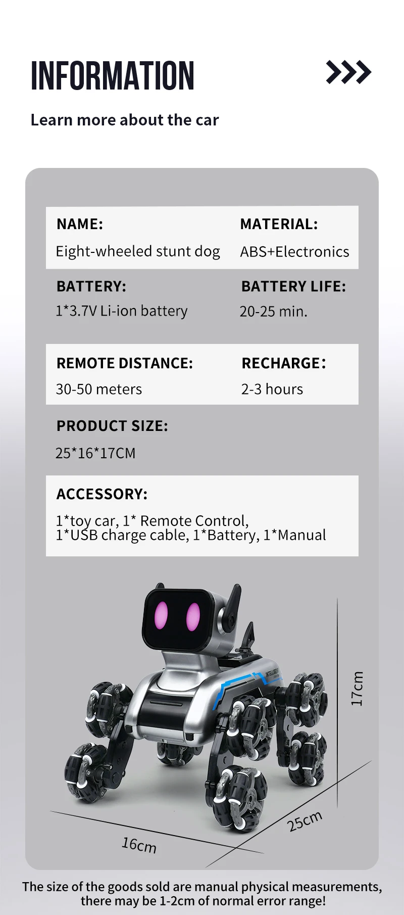 Name | Eight-wheeled stunt dog | Wi-Fi | 2.4Ghz |