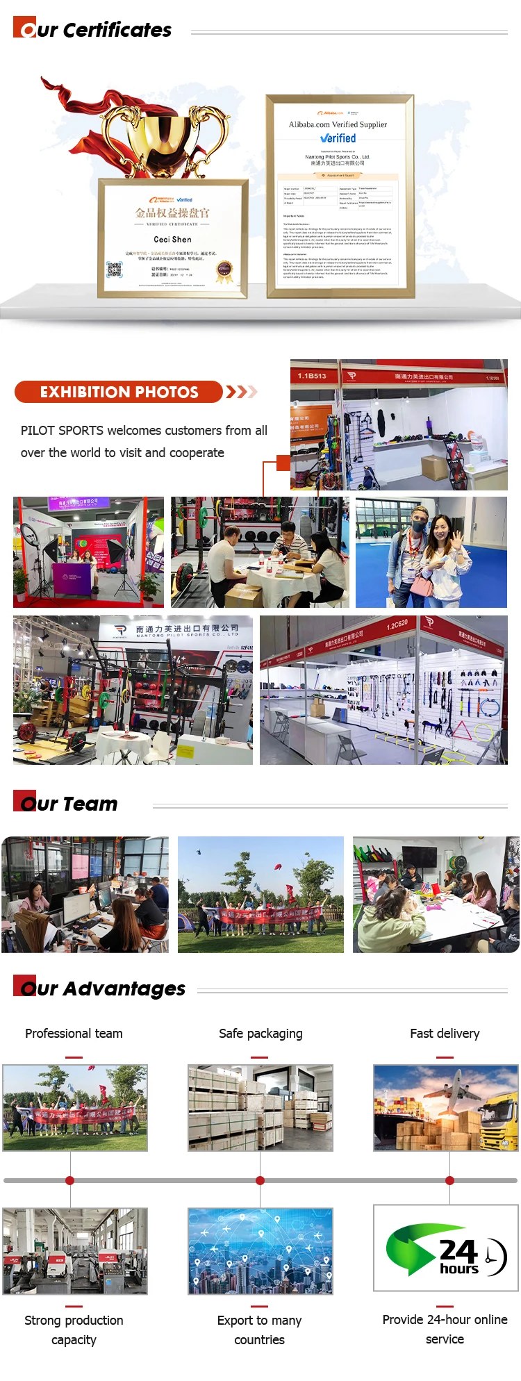 Nahtong Pilot Sports is a company specialized in sporting goods and fitness equipment, we are manufacturing and trading integration company.Specialized in following items,1.cossfit rig, power rack, half rack, bench, sled,roman chair,storage rack2.plate, dumbell, barbell, kltelell, olympic bar3.power band, jump box,jump rope, TRX,battle rope4.slam ball, medicine ball, wall ball, power bag, weight vest,bulgarian bag,ankle weights5.punching bag, boxing gloves6.AB mat, gym floo aerobic step, balance board, exercise wheel, push up stand, hand grip, hula hoop7.itness gloves,yoga series(yoga ball, yoga pole, yoga mat, yoga block, yoga wear, foam rollet, massagestick).