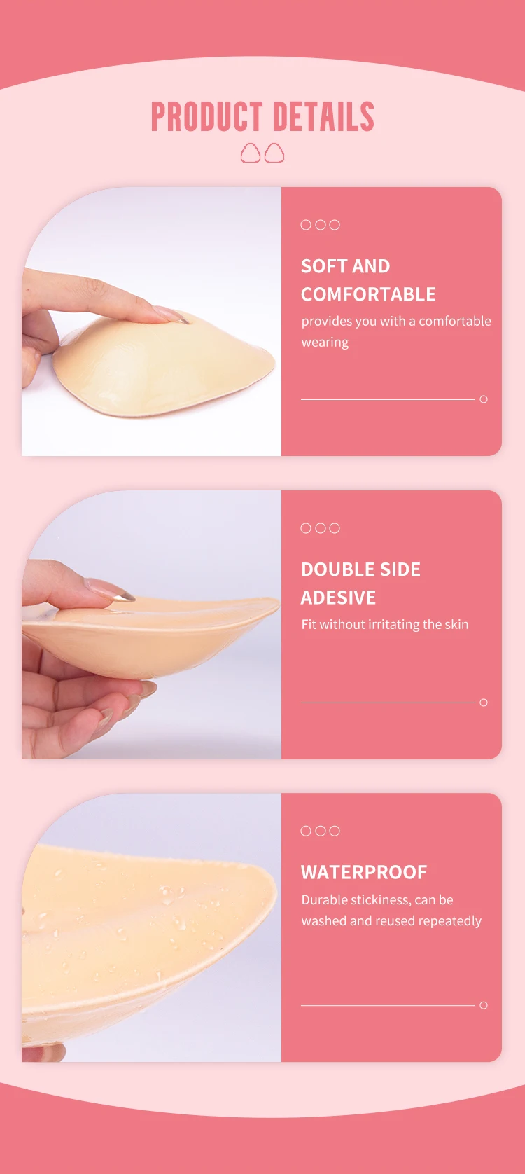 INVISFEEL Hot Sell Double Sides Adhesive Reusable Sticky Bra Pad Sticky Breast Inserts for Women