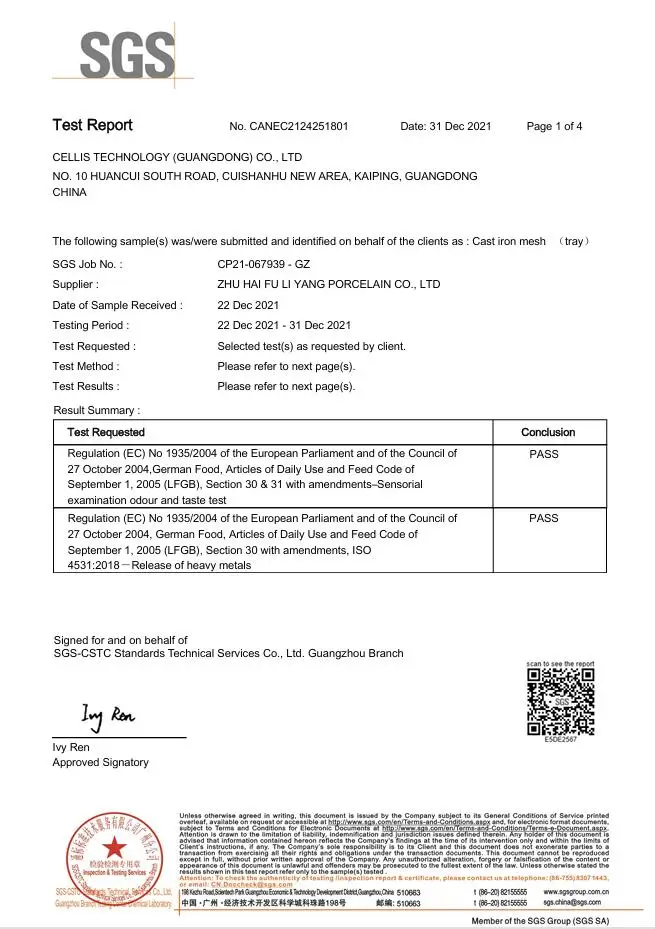 LFGB | FDA | KFDA | ISO9001 |