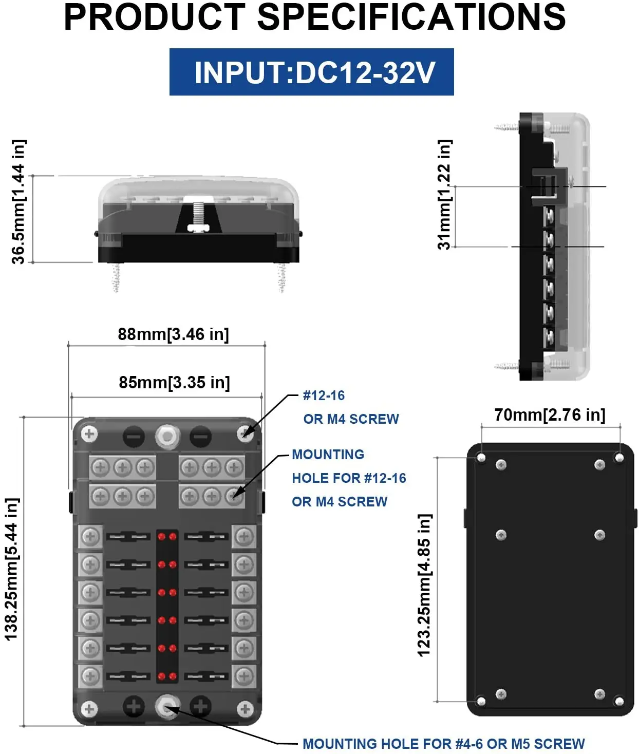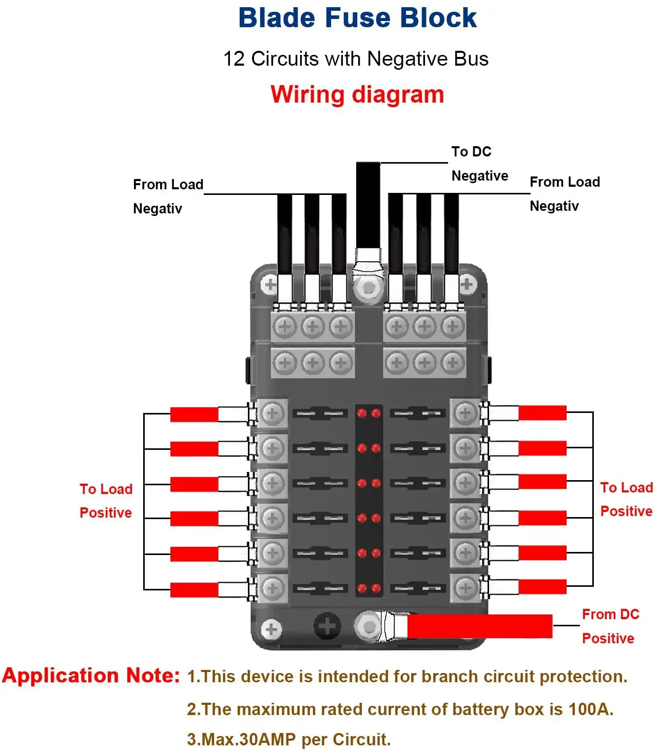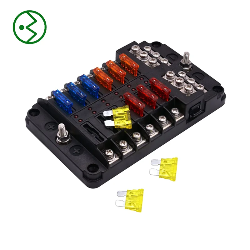 Type | 12V Fuse Block 12 Circuit Fuse Box Kit with Damp-Proof Fuse Panel Led Warning Indicator for Marine Automotive Motorcycle RV Truck DC 12-24V |