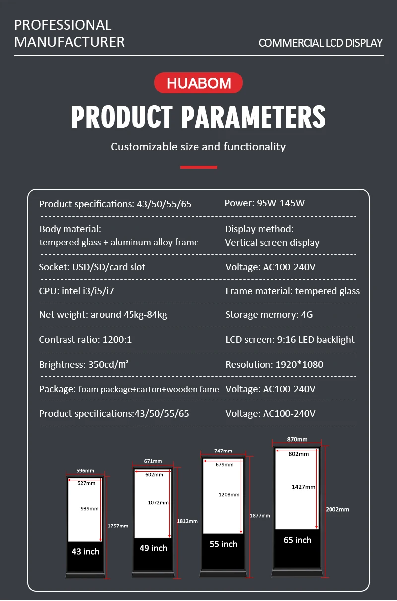 CD Screen Size: | 32"/43"/50"/55" 65"75"optional |