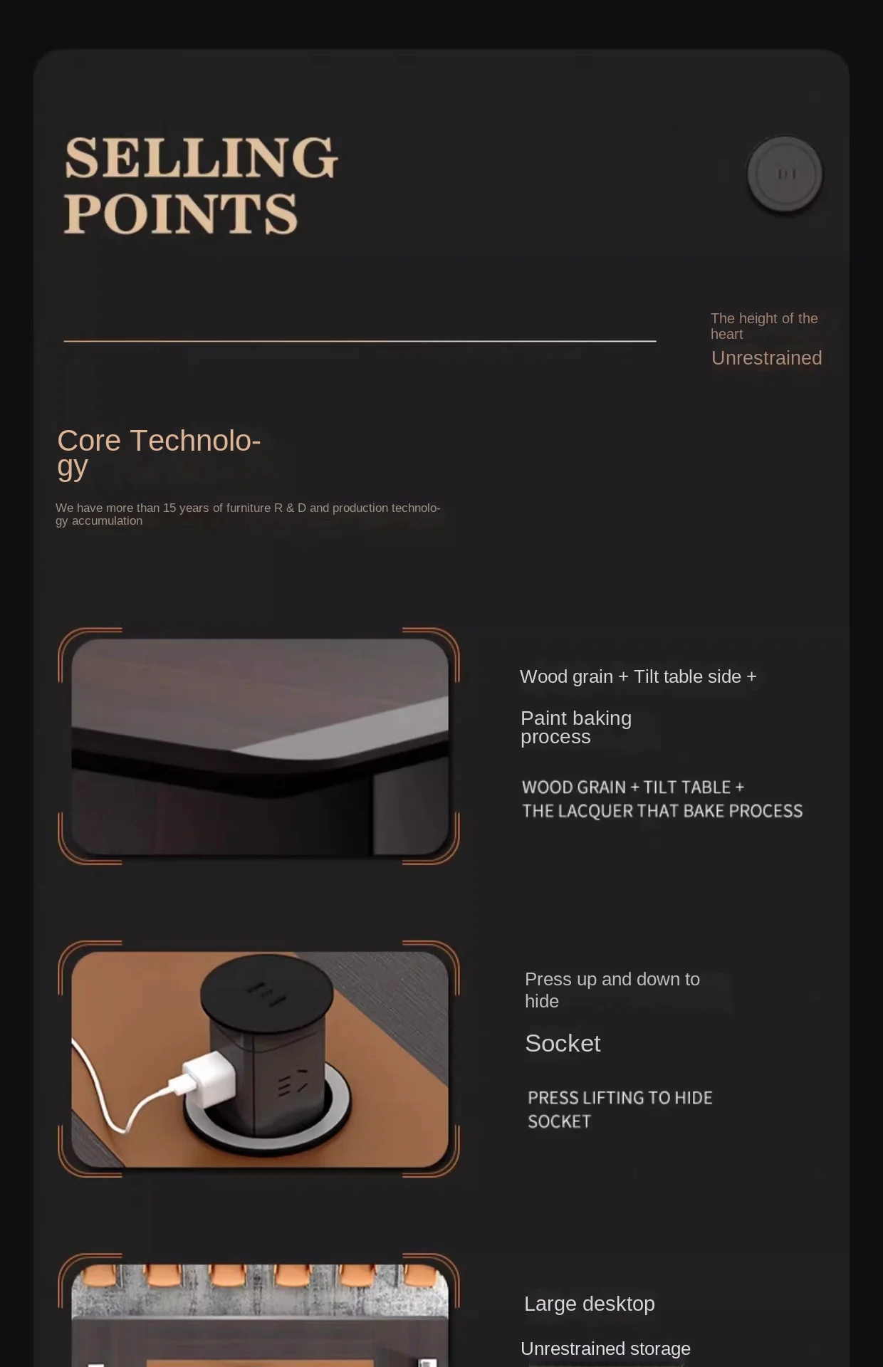 Chinese Environmental Protection Products CQC certification, FSC forest certification adopts inter industry standardization certification; has obtained over 100 invention patents, utility model patents, and appearance patents; has effectively obtained Guangdong Province Shouhe Heavy Credit Enterprise, Cup Standardization Good Behavior AAAA Enterprise Certificate, Enterprise Credit Peak AAA Certificate, China Industrial Innovation Advanced Enterprise, Quality, Service, and False Trust AA Unit, Foshan Intelligent Environmental Protection Furniture Engineering Technology Research Center, Guangdong Intelligent Environmental Protection Engineering Technology Honorary titles such as Art Research Center and Top Ten Chinese Furniture Brands.