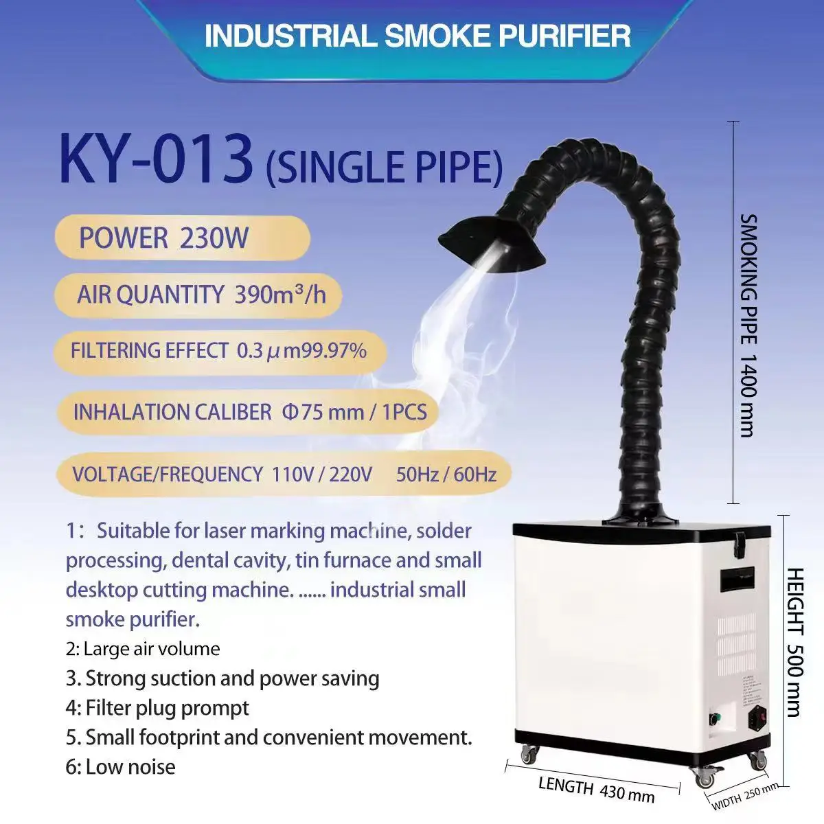 3)Multiple filter design ensures thorough fume purification;
