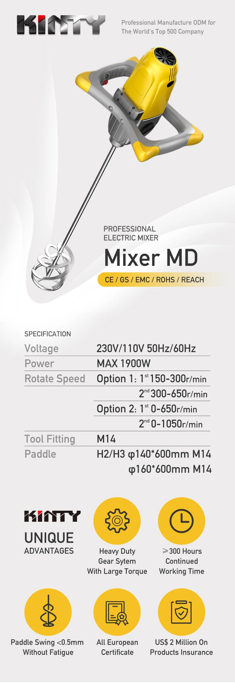 Rotate Speed 1 | 1st 150-300r/min 2nd 300-650r/min |
