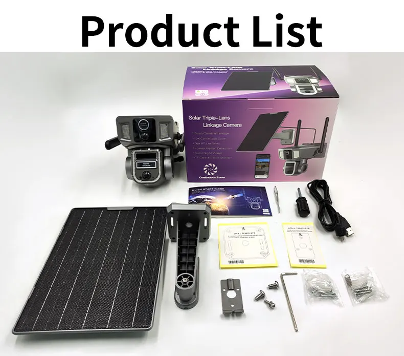 Product name | Solar three lens linkage camera WIFI/4G dual-compatible |