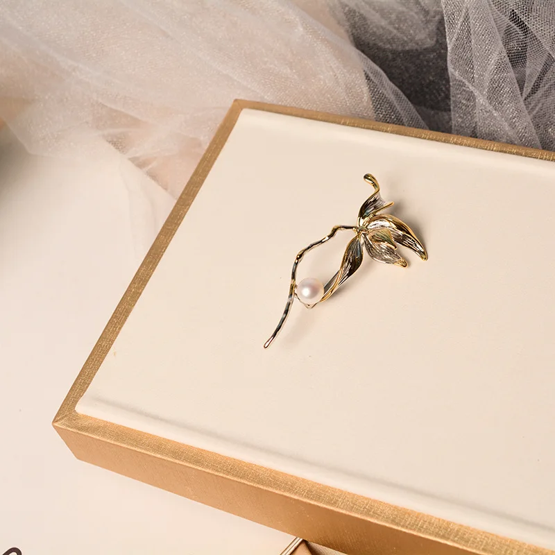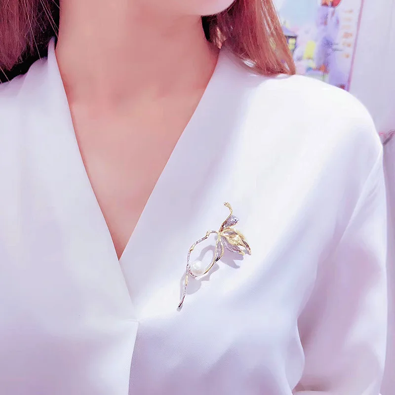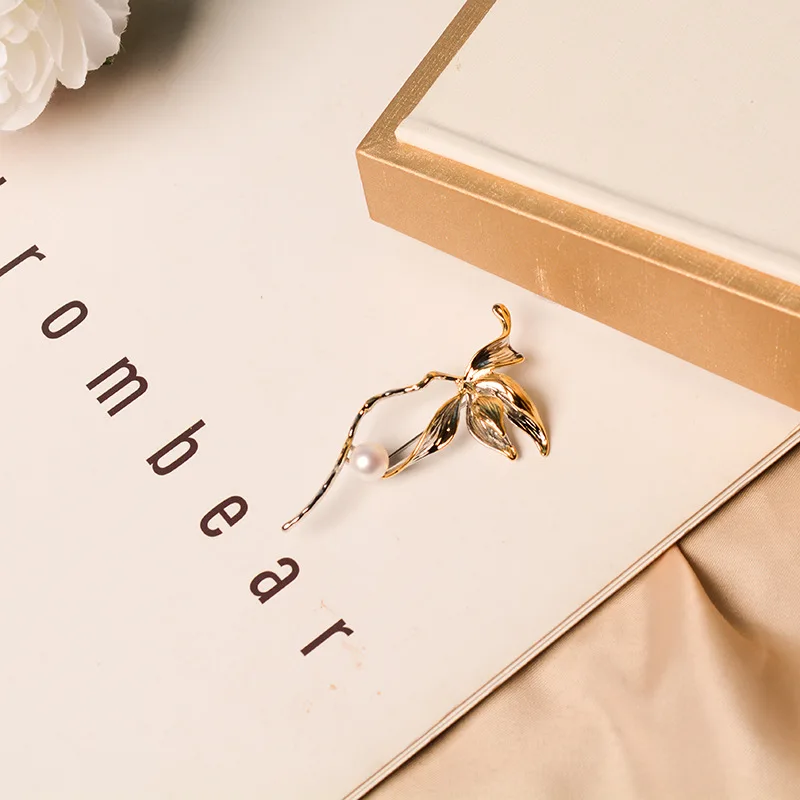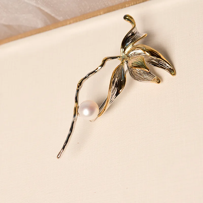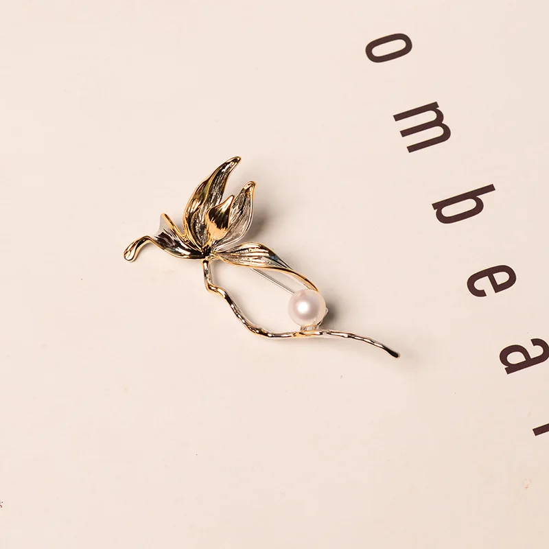 Vintage Brooch Gold-plated color-separated Rose flower suit accessories Europe and the United States creative natural freshwater pearl corsage