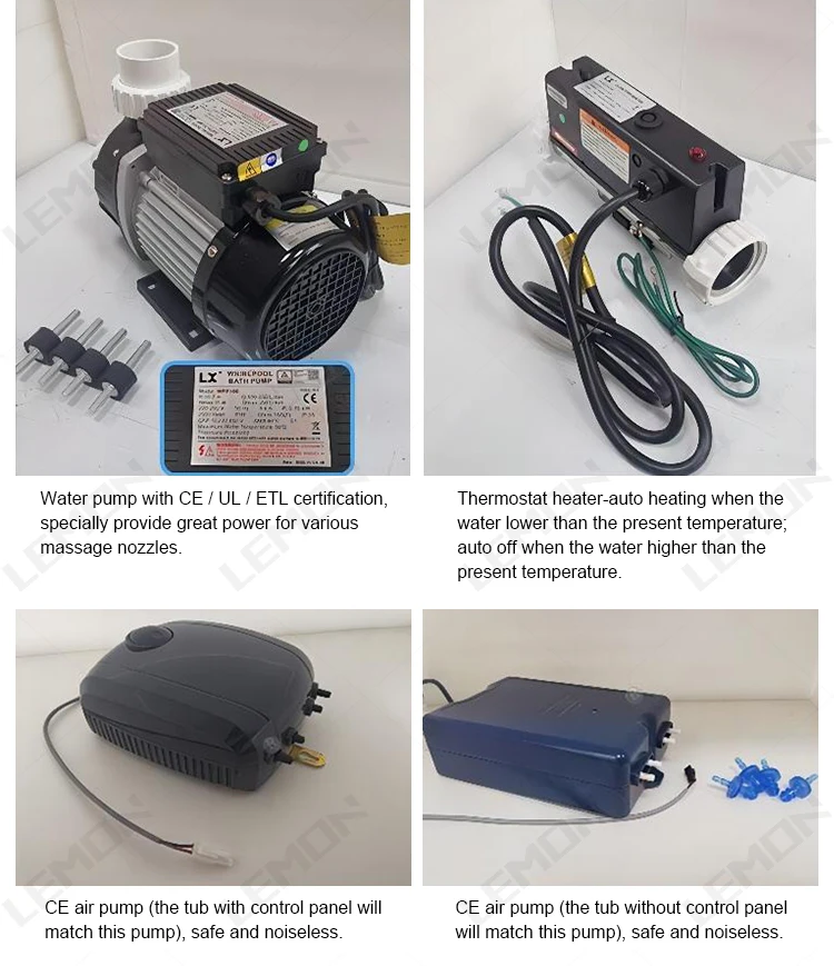 Two side glass,white color ,bathtub body Air bubble jets ,massage jets , with colorful lights Drainer,overflow , hot and cold tap ,shower | |||||||