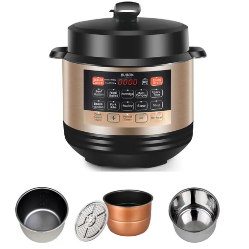 4.With a powerful 1000W motor and 220V voltage capacity, the pressure cooker heats up quickly and cooks evenly, allowing you to prepare delicious meals for your family in minimal time. Ideal for both households and professional chefs, it is an excellent investment for anyone seeking to simplify their cooking process.