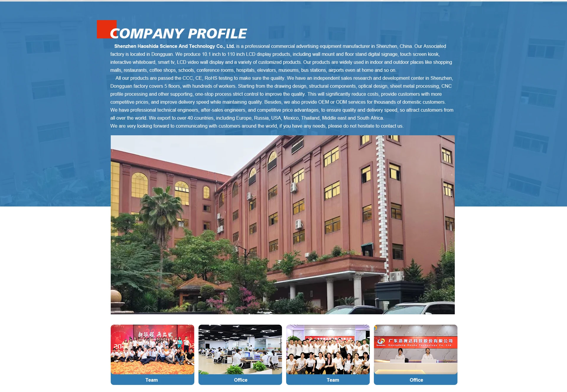 Screen type | A+ grade lcd commercial screenResolution: 1920*1080, FHD; OR 3840*2160, UHD | |