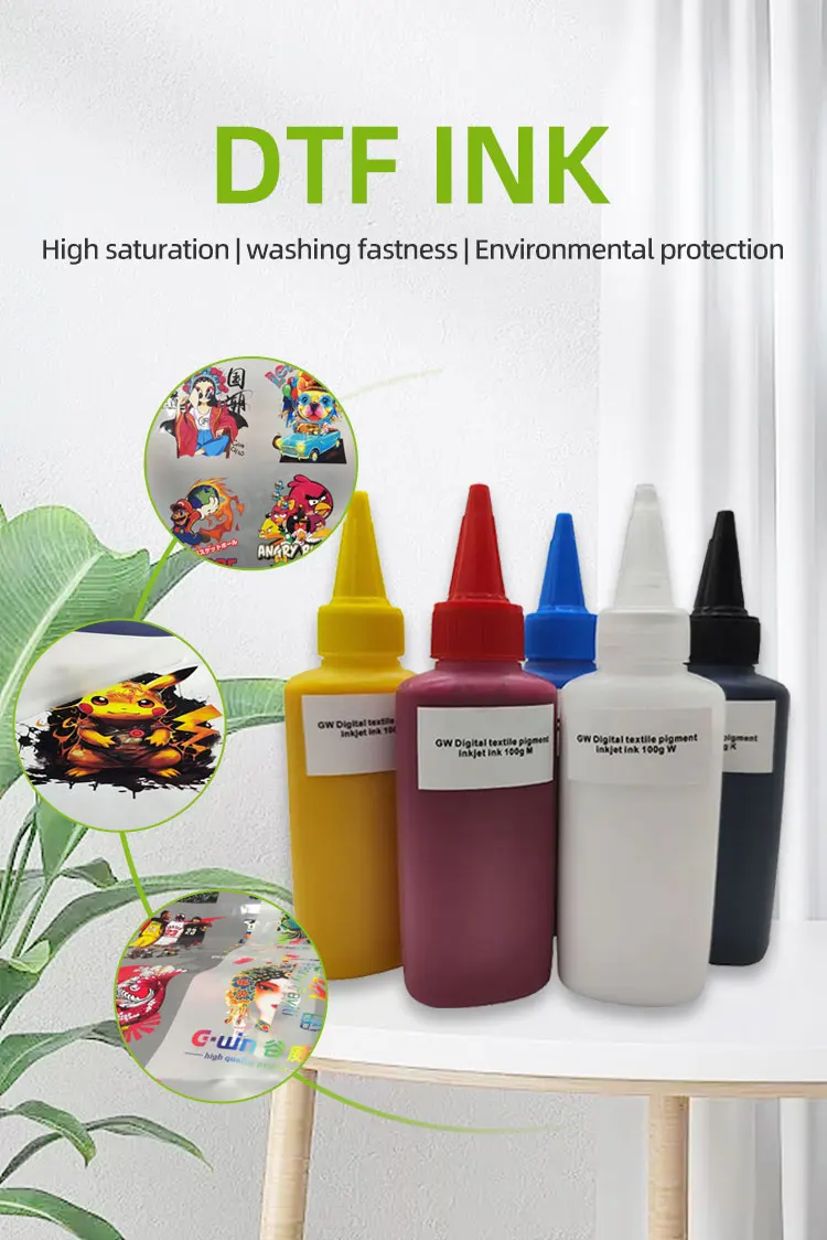 Gwin DTF Pigment Ink for EPSON DX5/7/5113/4720/XP600/I3200 Desktop Printers for All All Epson with CMYK White Colors
