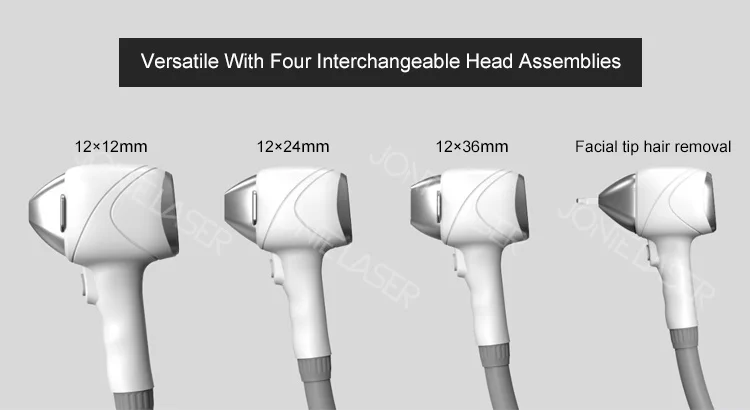 1.diode laser hair removal 1800W three wavelength will match four different spot size . it is 12*12 , 12*24 , 12*36 and nose hair,when you swich the handle head ,the software will automatically match and calibration and keep the same energy intensity.2.Ours is an advanced optical shaping solution that uses optical lens technology + FAC, so that there is no loss of light source and no light leakage. Optical path length from 90mm shorten it to 20mm. After shortening, the cooling transmission is faster. The handle is smaller and lighter