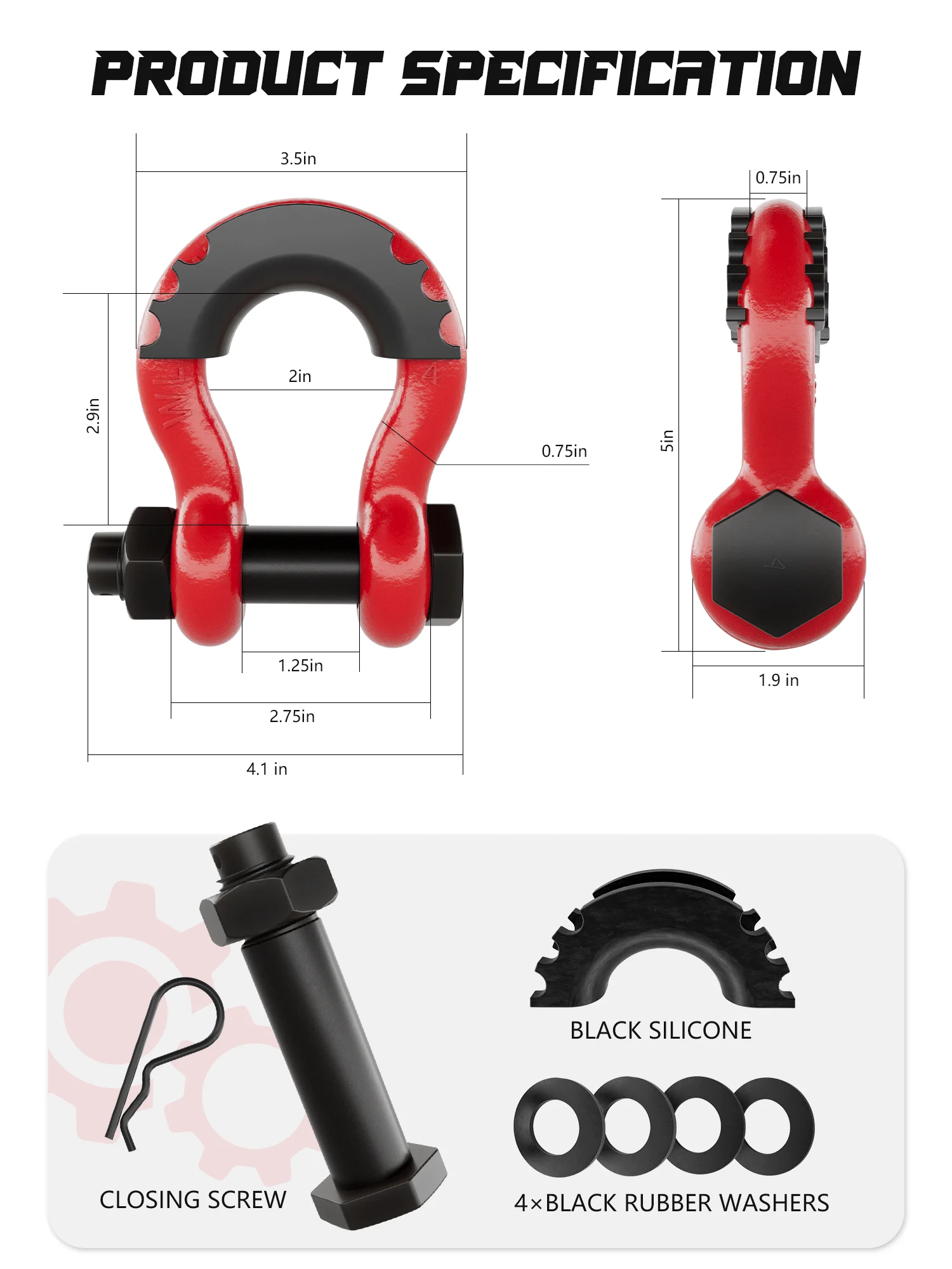 Specification | Tow shackle | ||||||