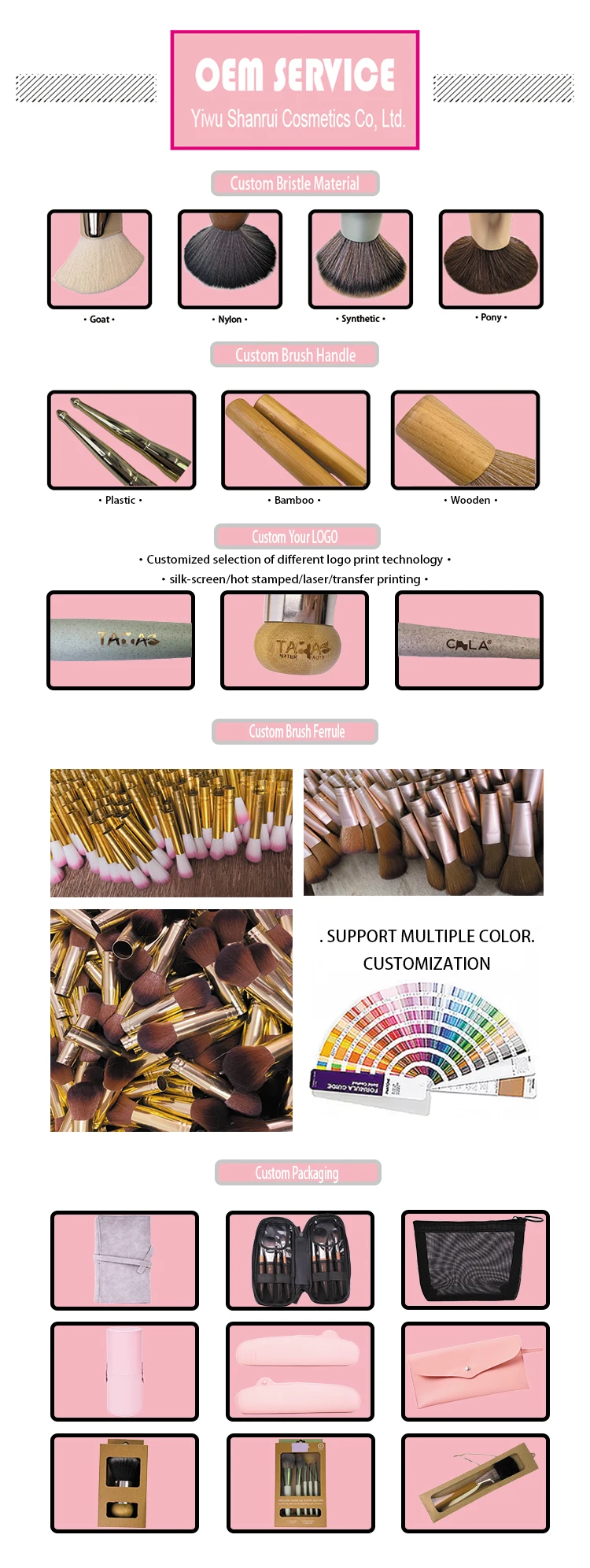 6 .What about the lead time for mass production? - Honestly speaking, it depends on the order quantity and the actual production schedule. For the products we have in stock, we can ship out in 5-7 days. For the new customized brushes, the lead time is about 30 days.