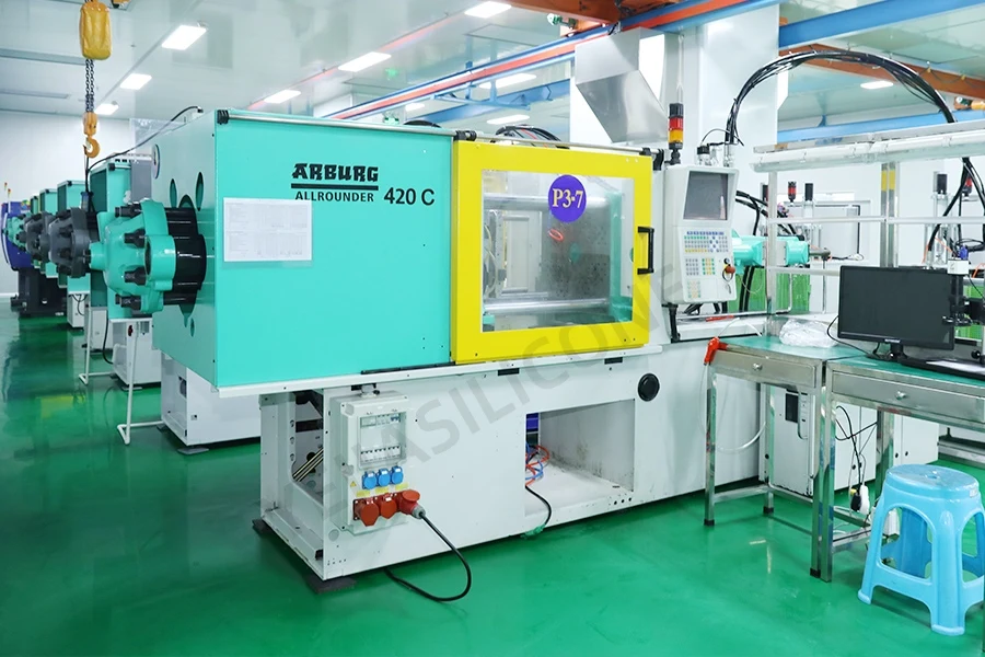 We've owned about 10,000 square meters modern workshops, various class 100,000 clean production workshops for silicone injection molding, and 100,000 class clean UV surface treatment workshop for surface treatment of silicone products. There are 39 sets LSR injection molding machines, 6 sets vacuum compression molding machines, and we’re planing to import more ARBURG horizontal liquid injection molding machines for manufacturing optical silicon lenses. Our company has passed the certifications of ISO9001, ISO14001, ISO13485 and IATF16949.