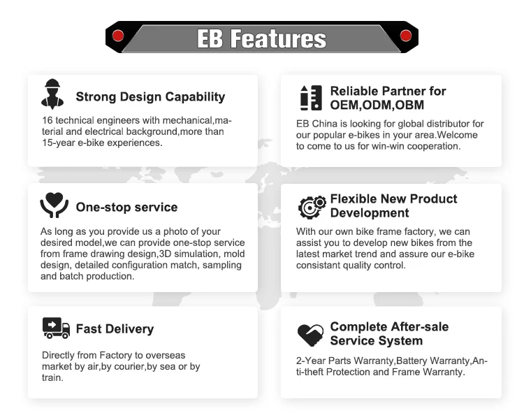 EB Electric Bicycle,Is a professional manufacture of electric bicycle over 20 years. We mainly produce electric bicycle, with modern management and advanced equipment, we are rapidly developing. Our factory is one of the first who have the rights of self import-export in China. We can produce more than 20000 pcs per year, and have been exported to many countries including Europe, America, Western Asia, Japan etc. We always pay much attention to the quality and new design, and our technology improved day by day.