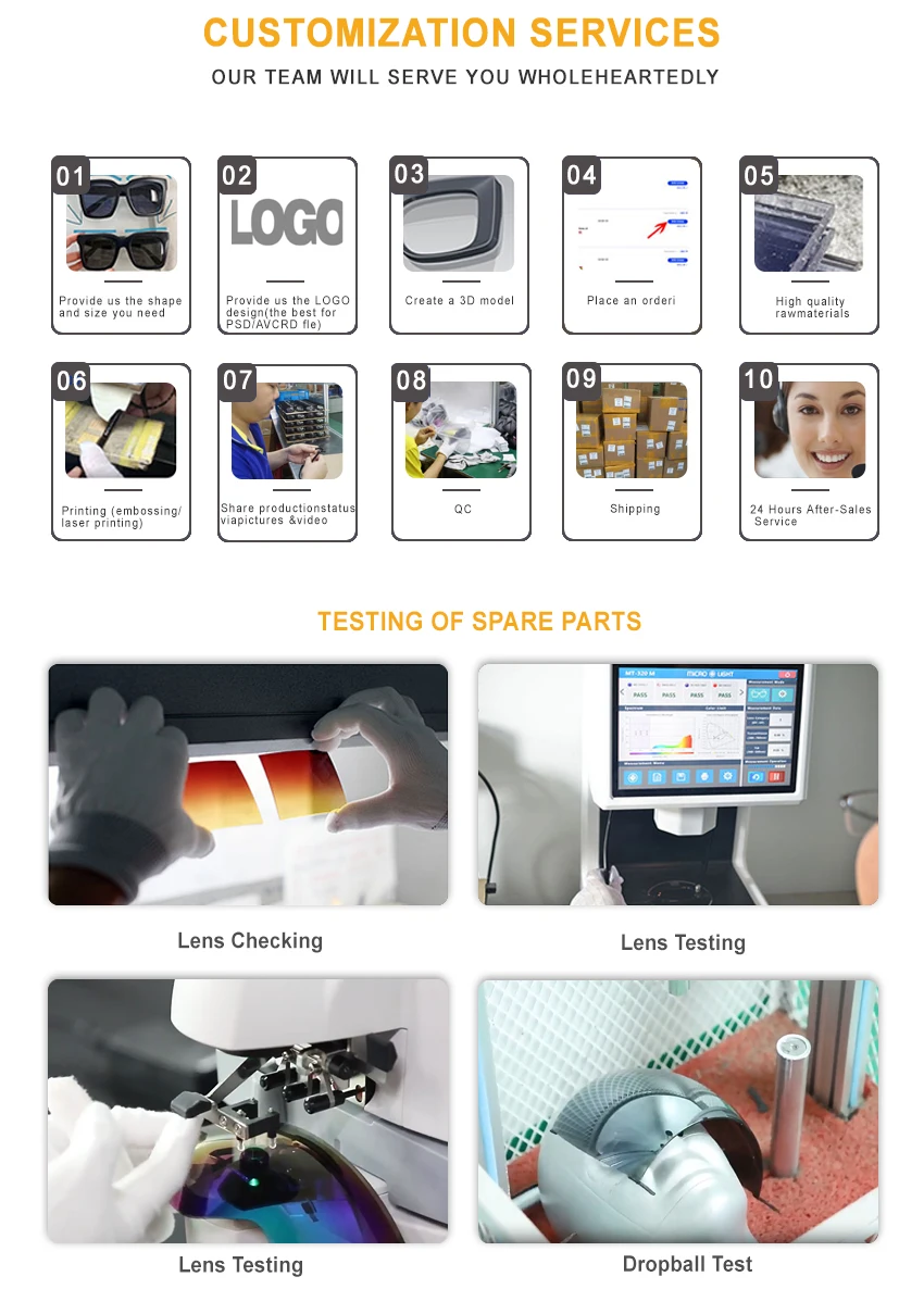 *Service | We Support Customized Lenses,frames,straps/Temples,packaging and Logo Styles (Engraved Logo,embossed Logo,metal Sticker Logo,printed Logo,laser Logo,fixed Metal Logo),etc. |