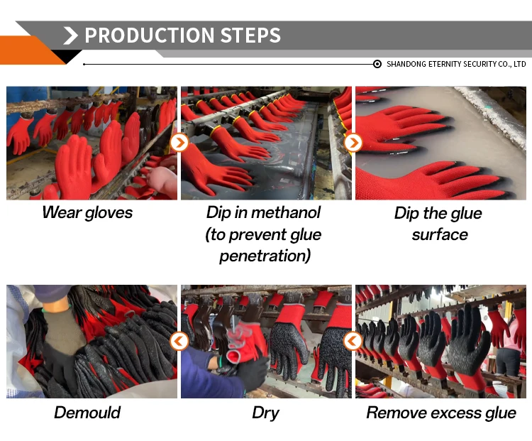 Mainly produces dipped safety gloves, product types include: latex, nitrile, PU, ​​PVC, anti-cut, more than 12,000 pairs support LOGO, hanging card, carton customization.