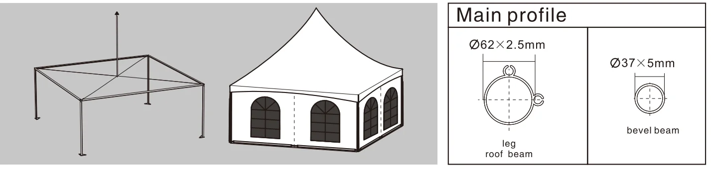 Cover Material | Double Coated Polyester Textile , 650 g~850 g/m2 Flame Retardant to DIN 4102 B1 , M2 | ||||||
