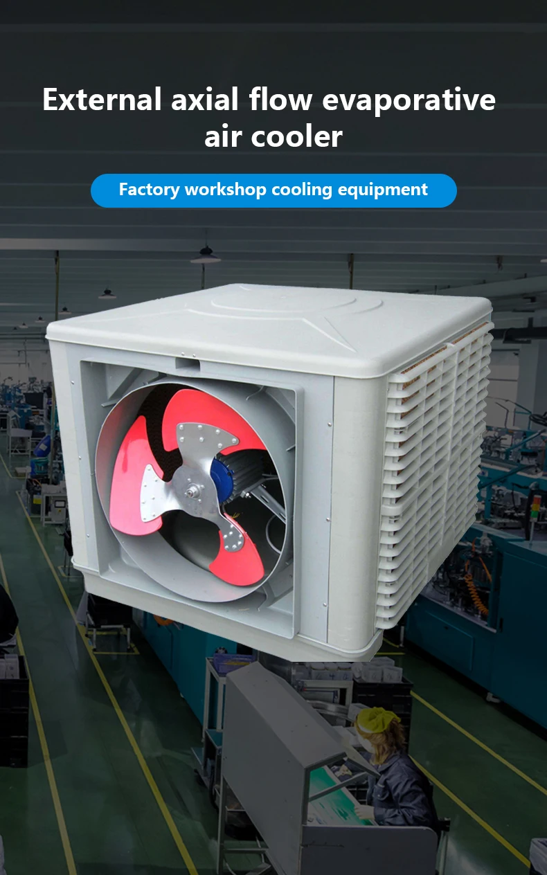 Industrial evaporative portable water cooling system air cooler provides cooling, moisturing, ventilation, deodorization andoxygen increasing.